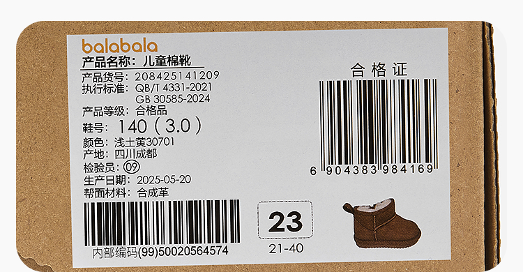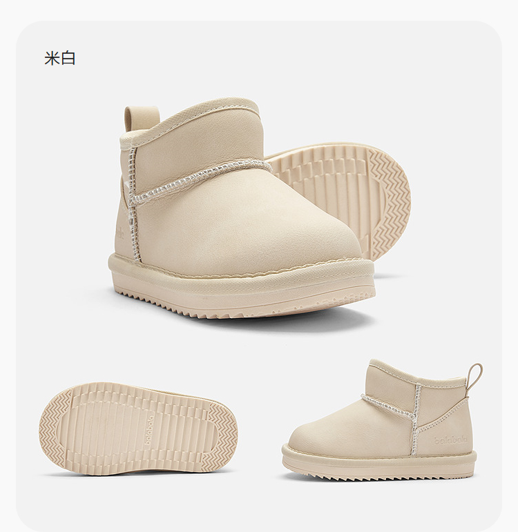 巴拉巴拉童鞋儿童雪地靴男女童短靴加厚加绒2025新冬靴子防滑棉靴