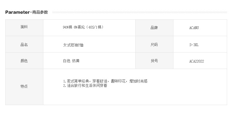 ACANU阿肯诺/女式短袖T恤 ACA22022