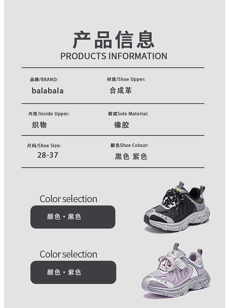 巴拉巴拉童鞋儿童慢跑鞋男女童2025年新款秋冬舒适透气鞋校园百搭