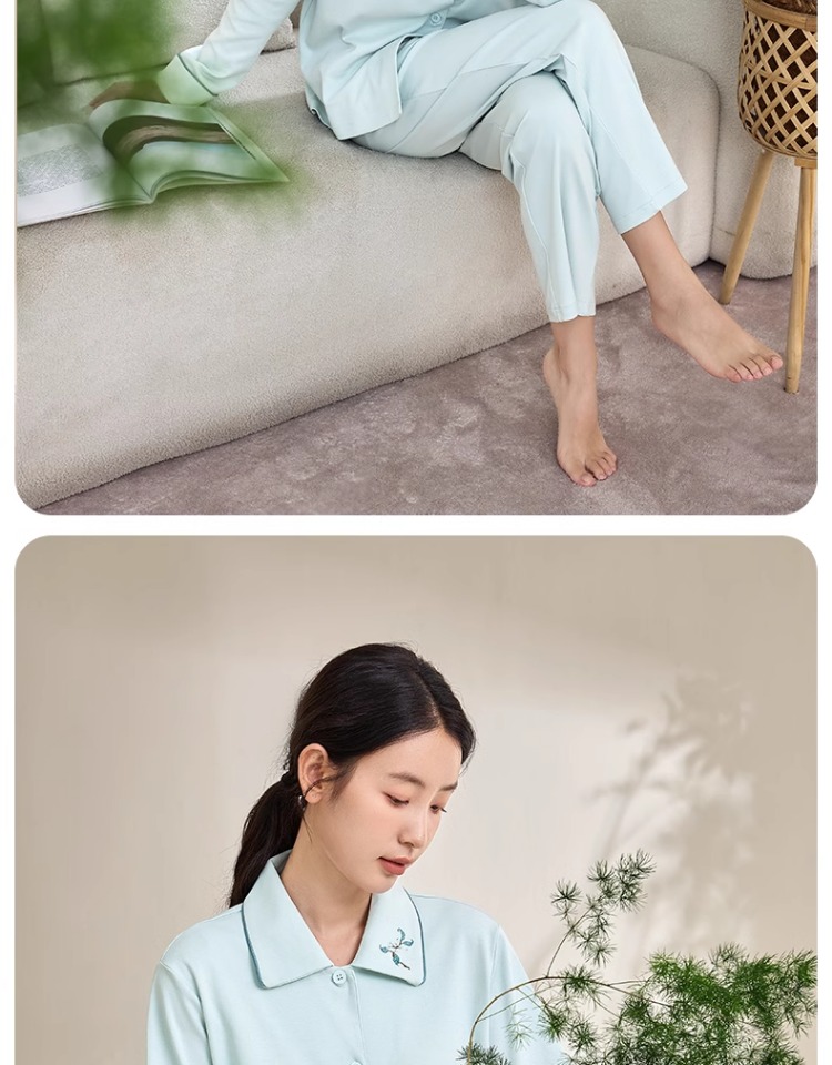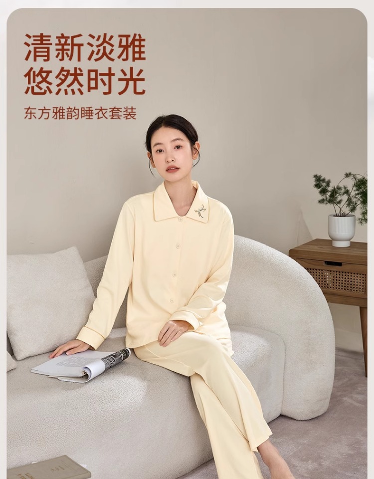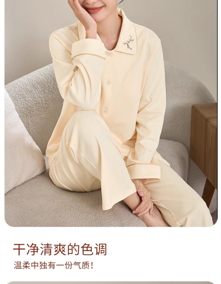 康妮雅女式长袖长裤开襟套装