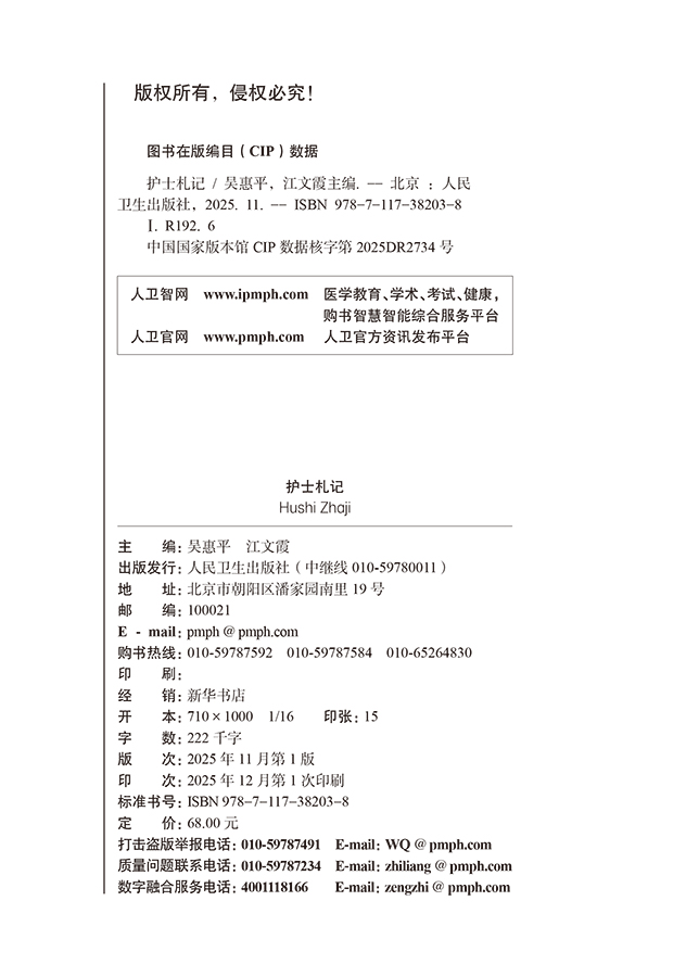 护士札记 吴惠平 江文霞 故事内容包括新手护士的成长之路、护士临床见闻及感悟、临床经典案例等 9787117382038 人民卫生出版社