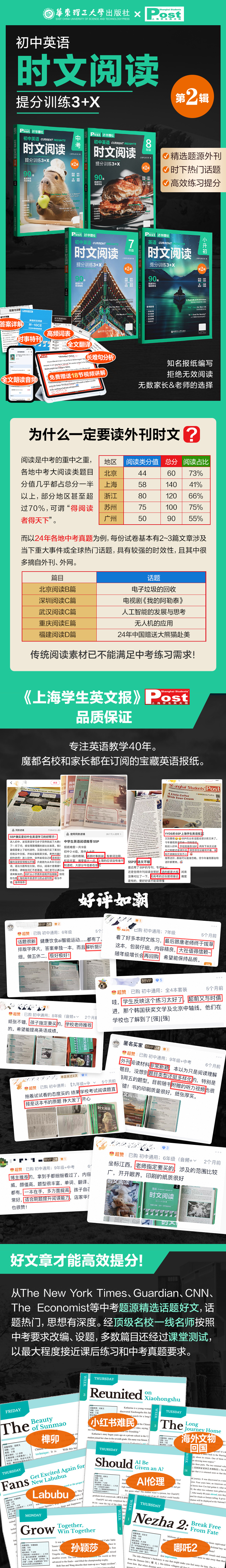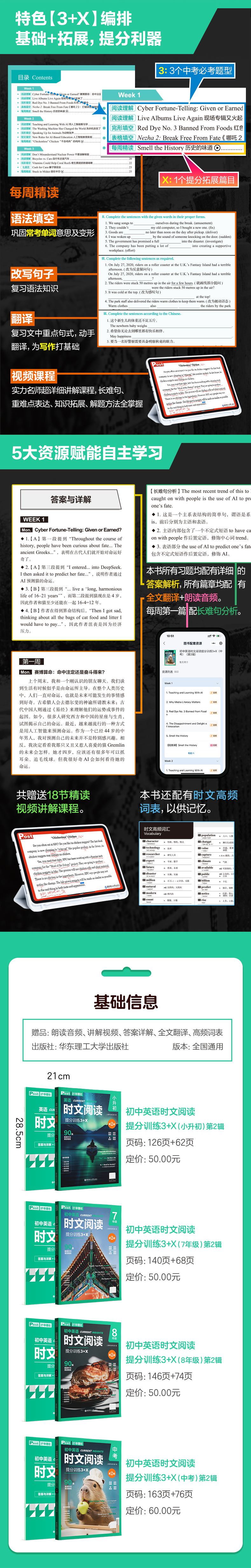 时文阅读第二辑上新 初中英语时文阅读提分训练3+X 初一初二初三SSP