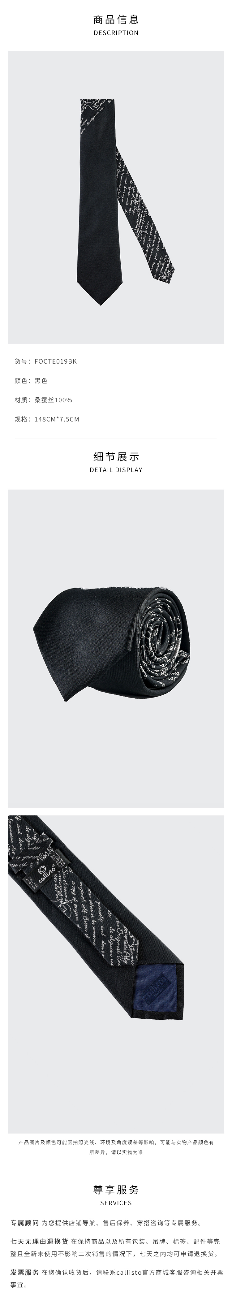 callisto黑色全桑蚕丝领带 FOCTE019BK