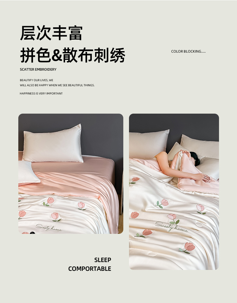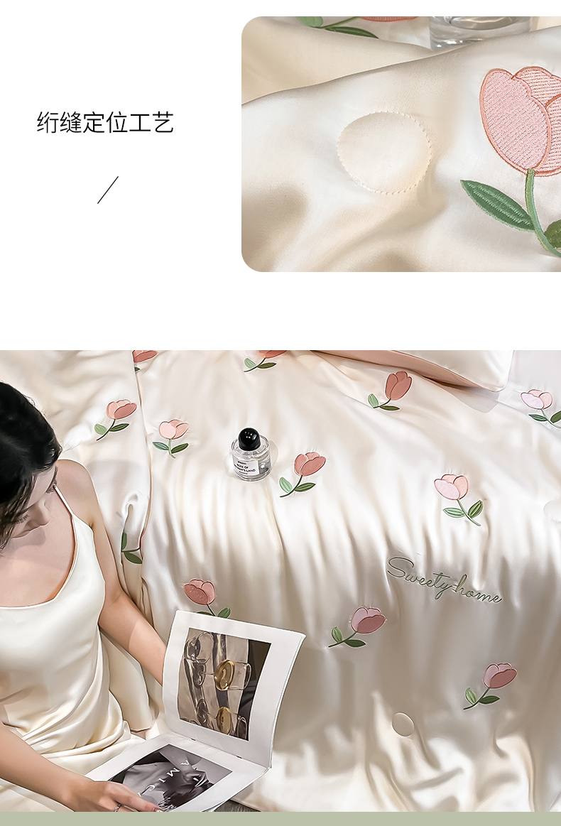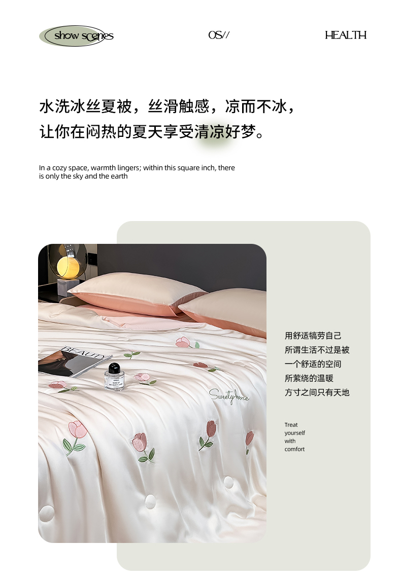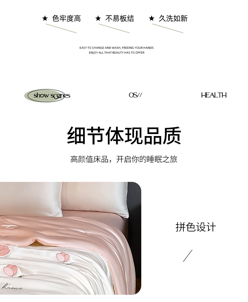 【YW】无忧购水洗刺绣冰丝夏凉被四件套(截单后7天发货)