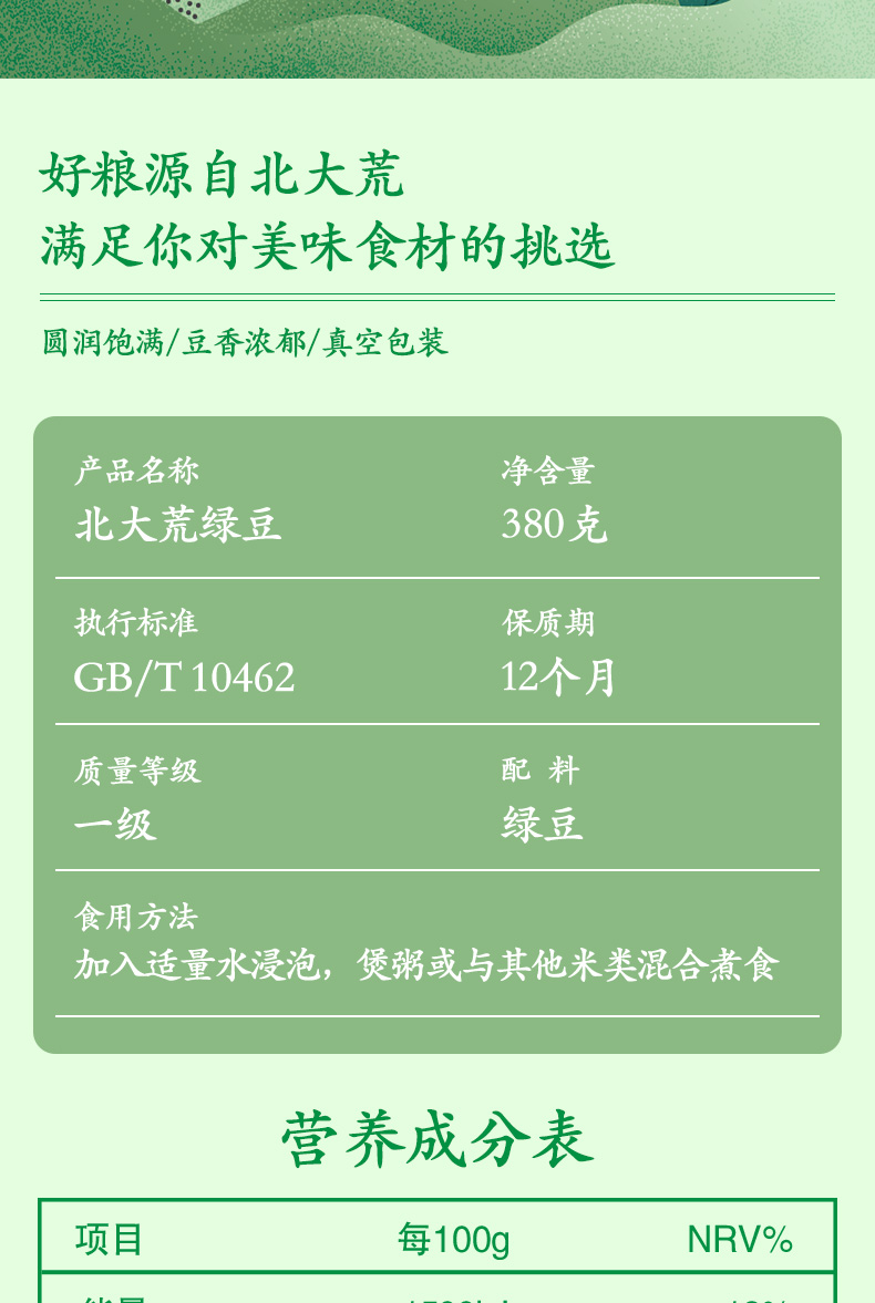 【中国农垦】北大荒彩虹系列绿豆380g