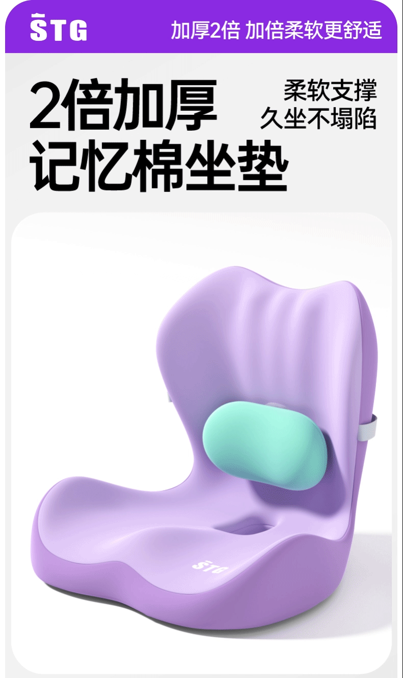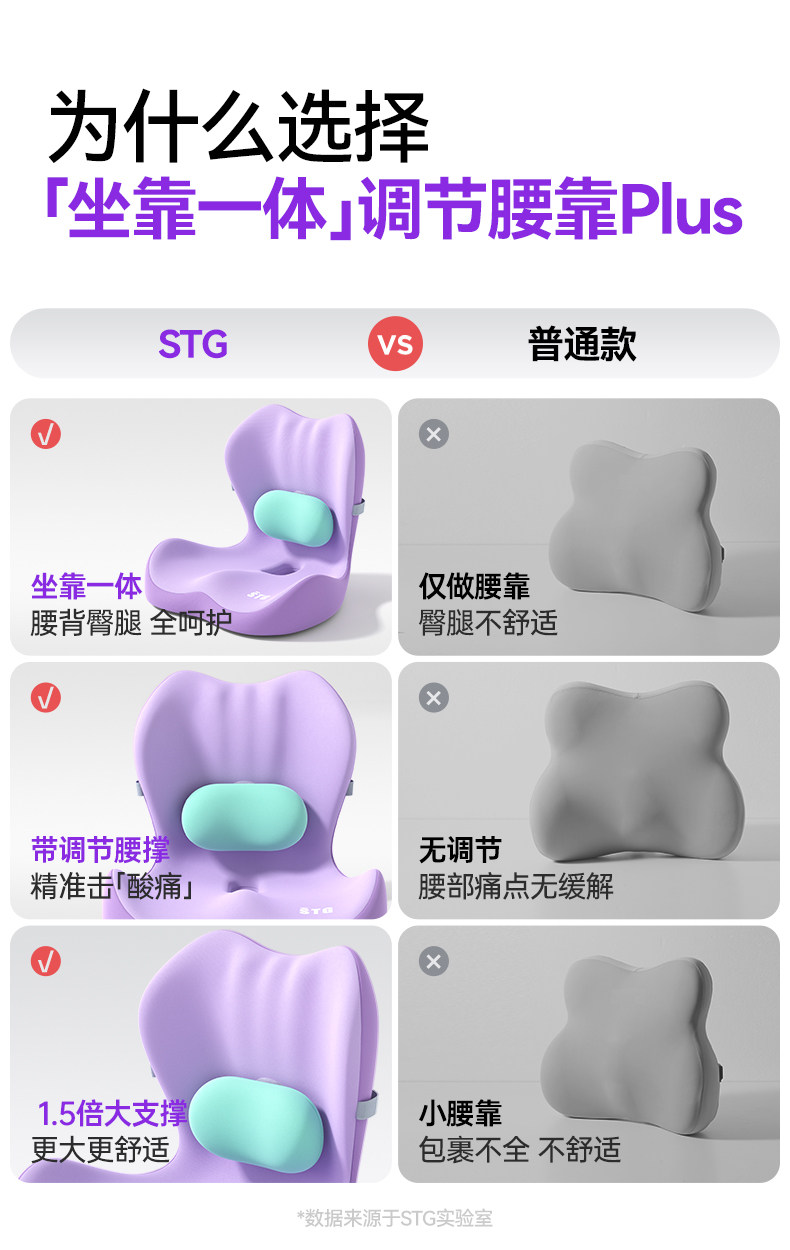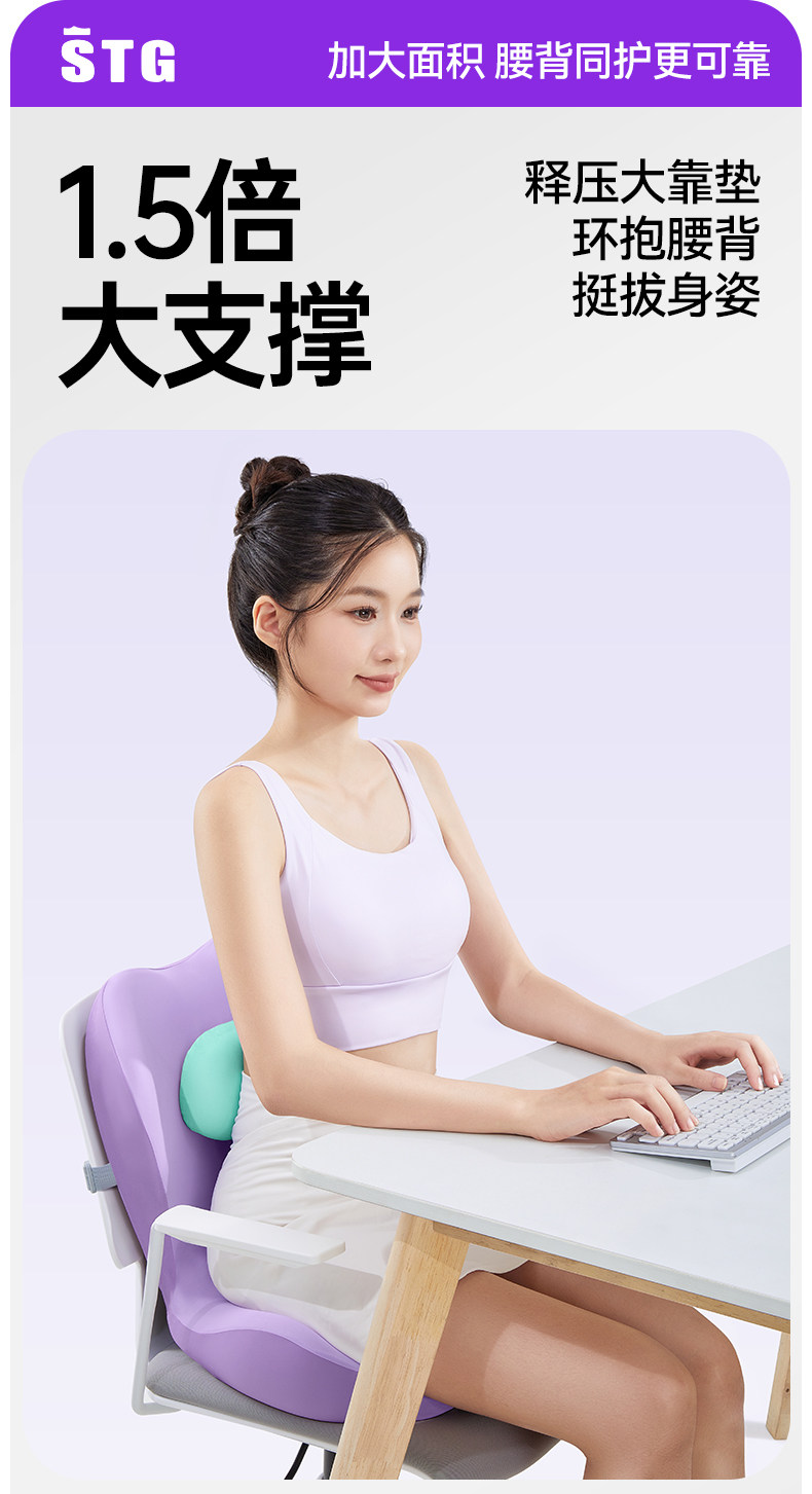 【美臀护腰,久坐不累的秘密】STG汽车专用护腰坐垫靠背一体屁垫椅垫久坐不累减压护腰座靠垫猫太子