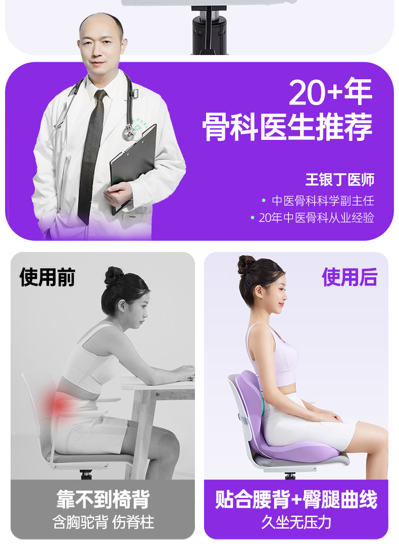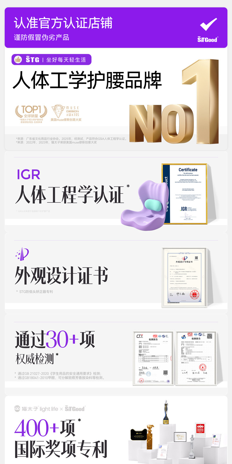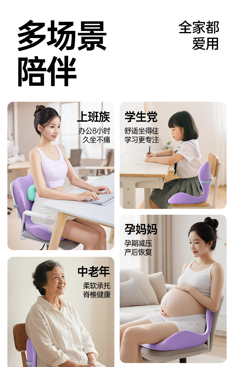 【美臀护腰,久坐不累的秘密】STG汽车专用护腰坐垫靠背一体屁垫椅垫久坐不累减压护腰座靠垫猫太子