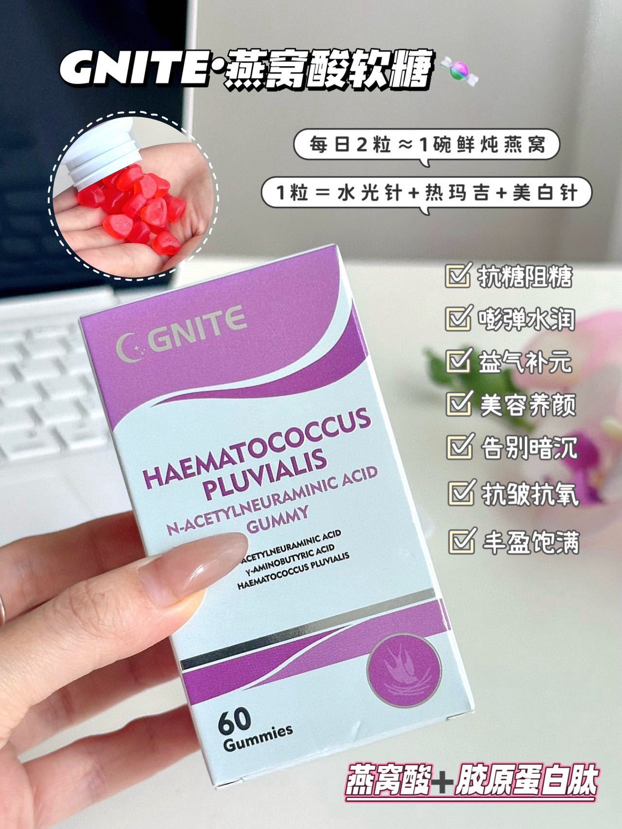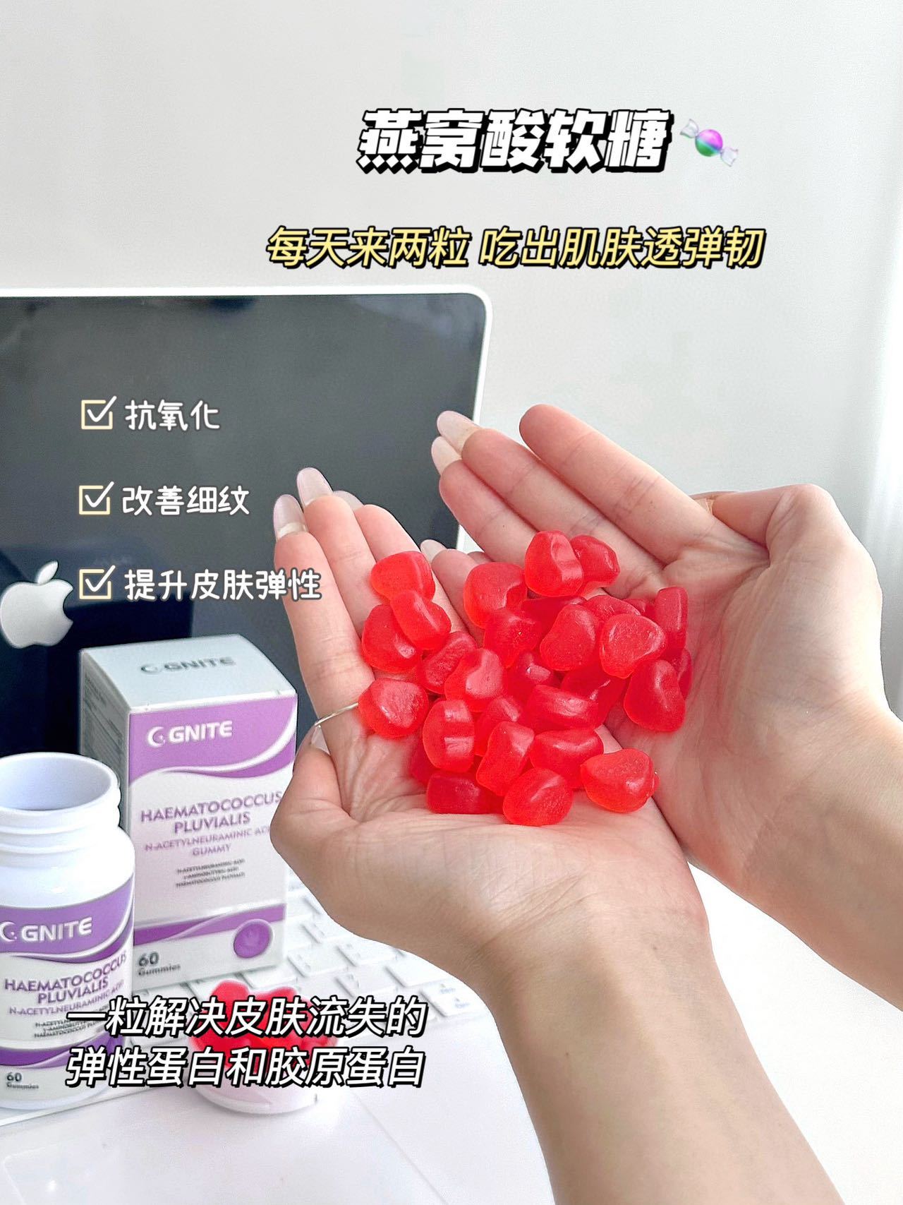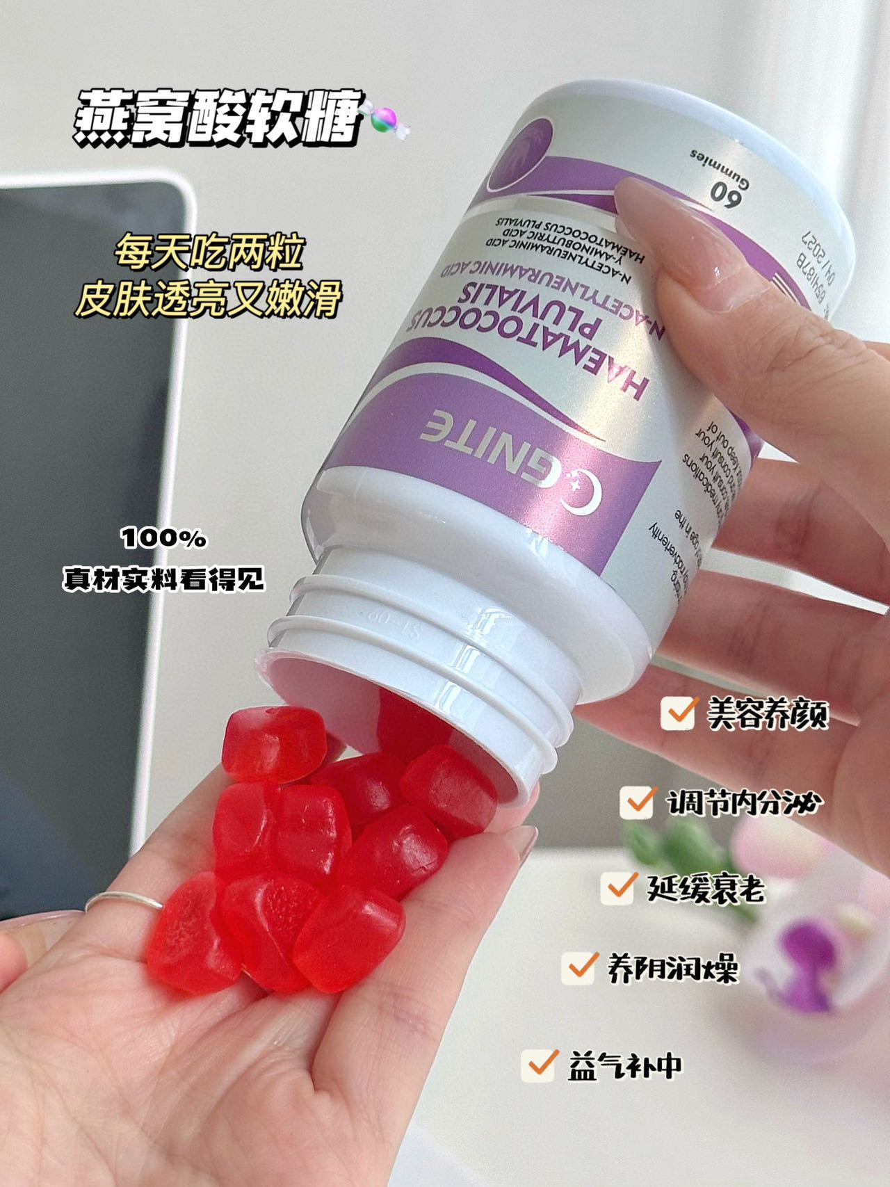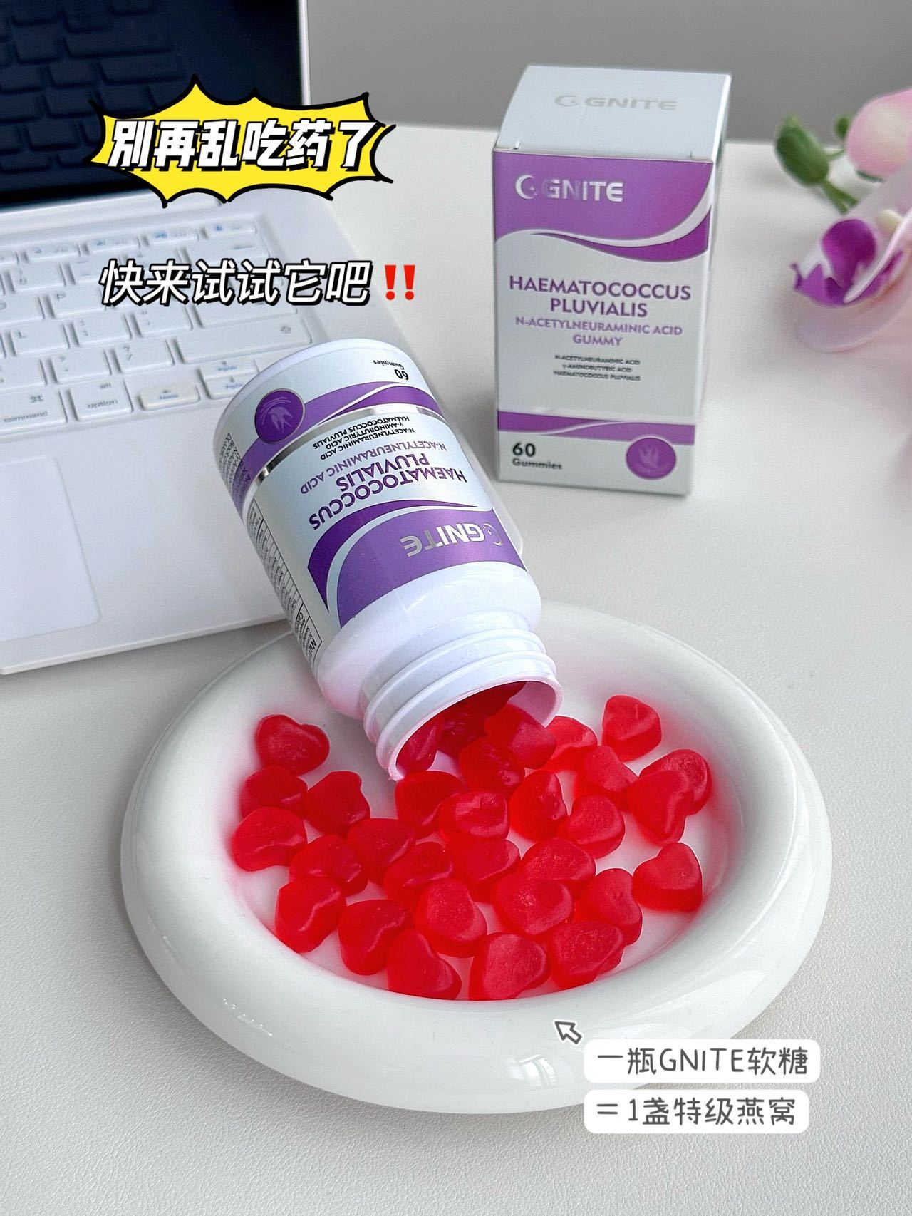 【多妈团购 GNITE燕窝酸软糖】不老女神 冻龄的秘密 燕窝酸雨生红球藻软糖 退黑色素 (拍2瓶送药盒) -合作品牌直发(康斯利)