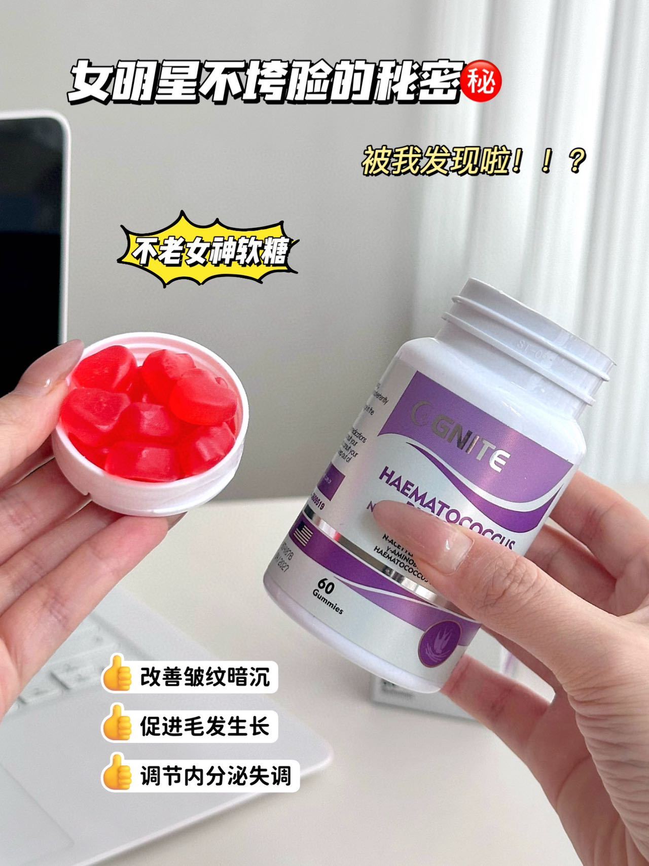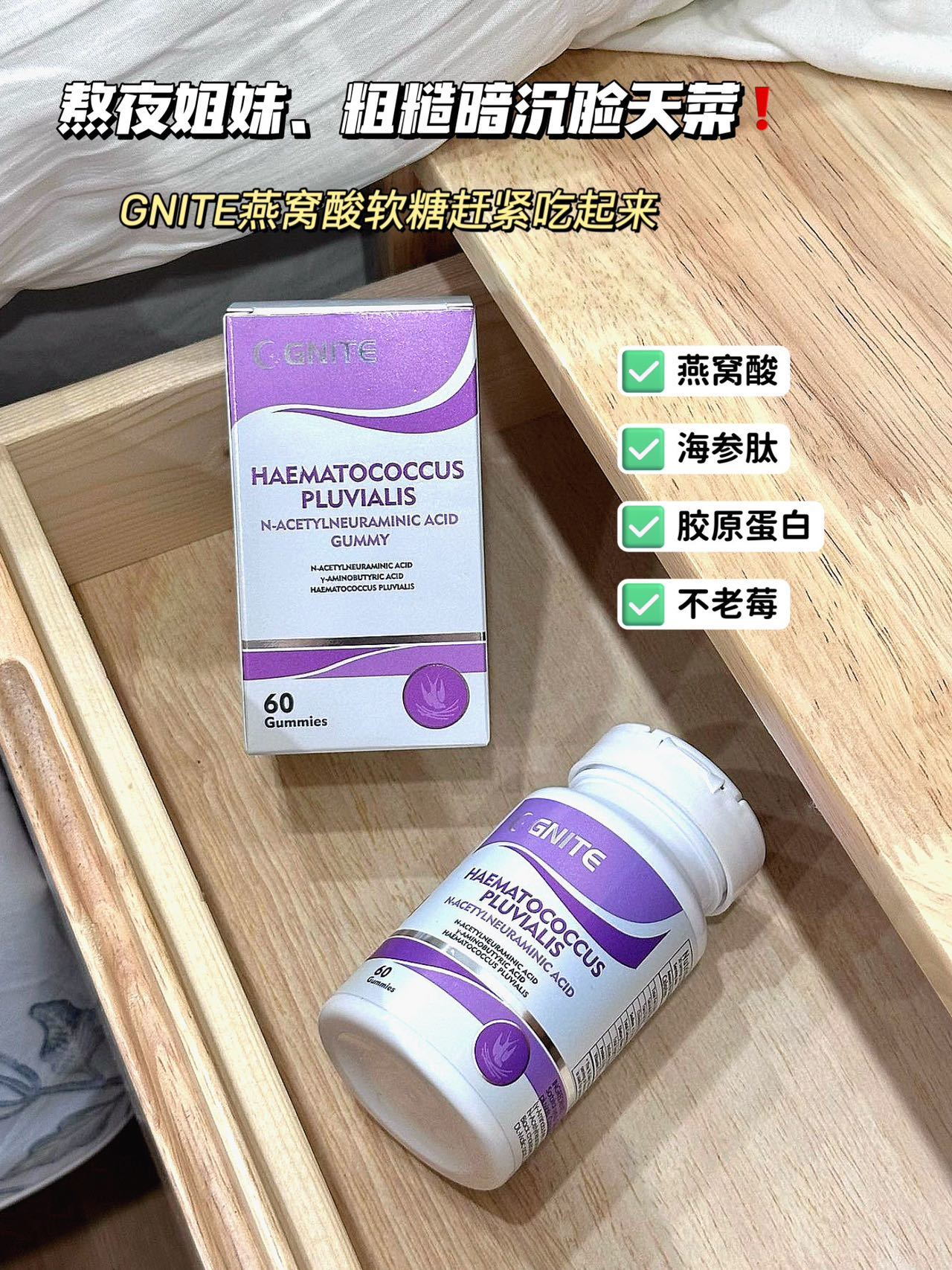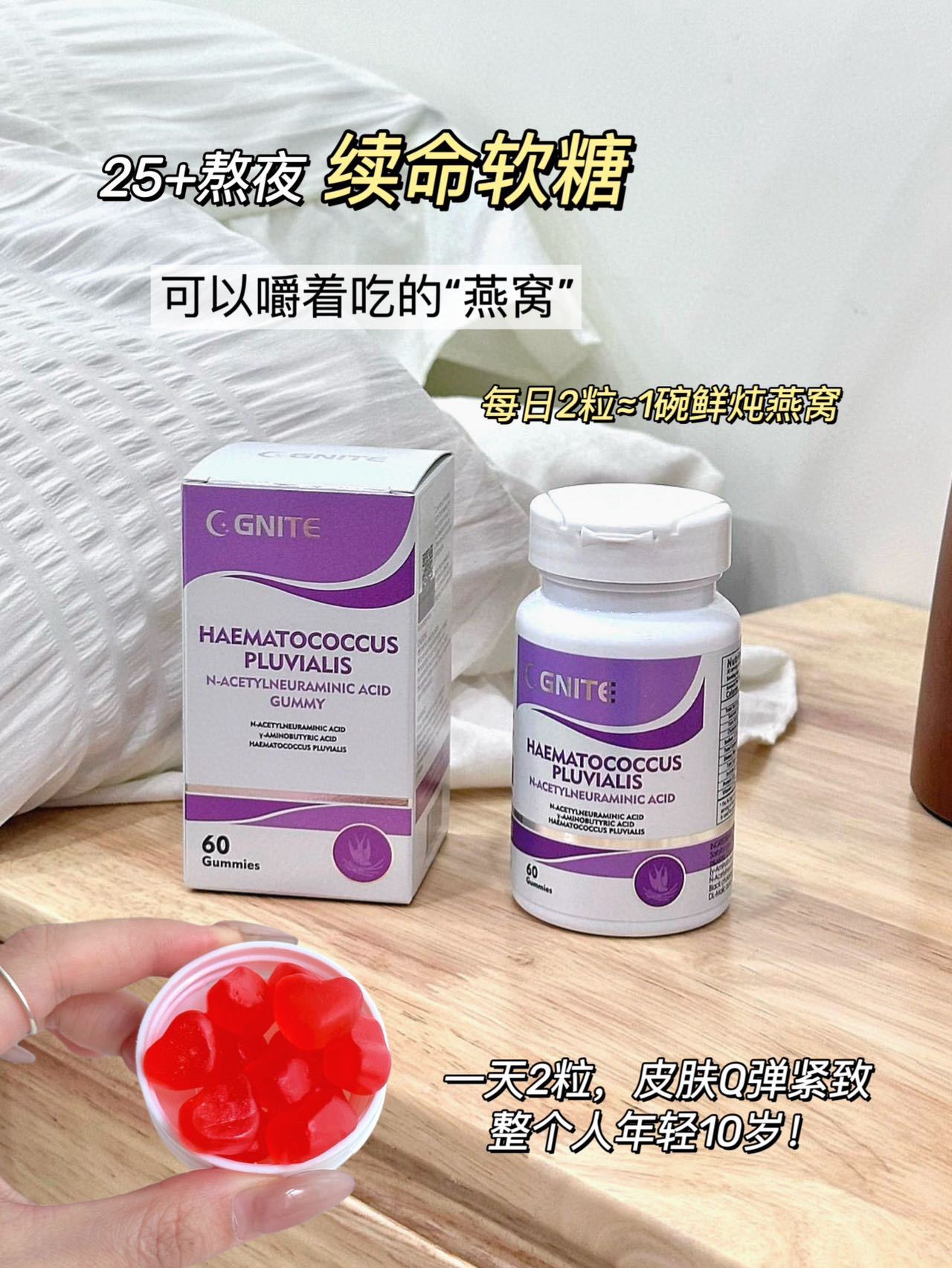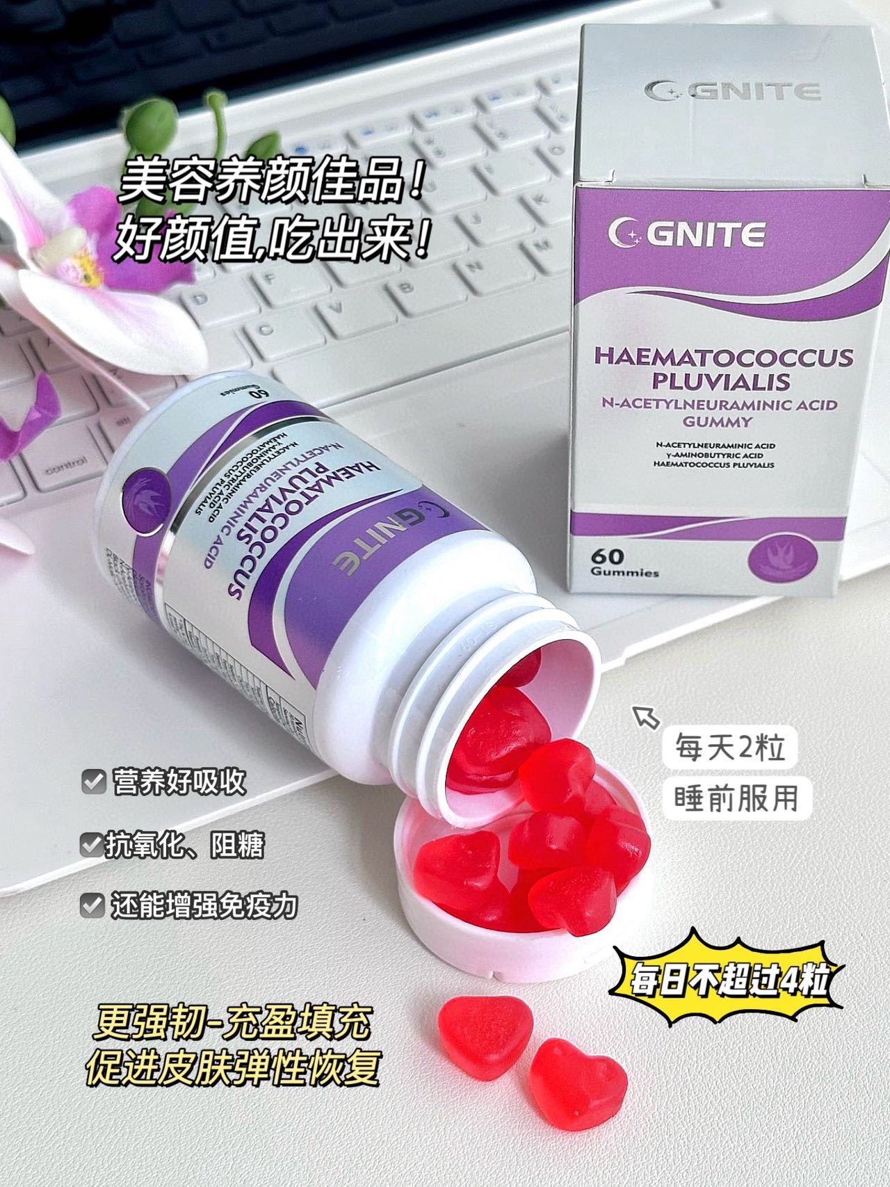 【多妈团购 GNITE燕窝酸软糖】不老女神 冻龄的秘密 燕窝酸雨生红球藻软糖 退黑色素 (拍2瓶送药盒) -合作品牌直发(康斯利)
