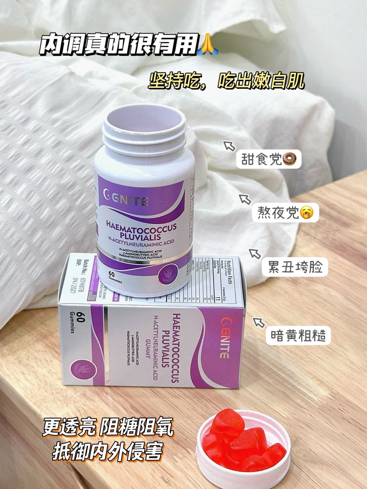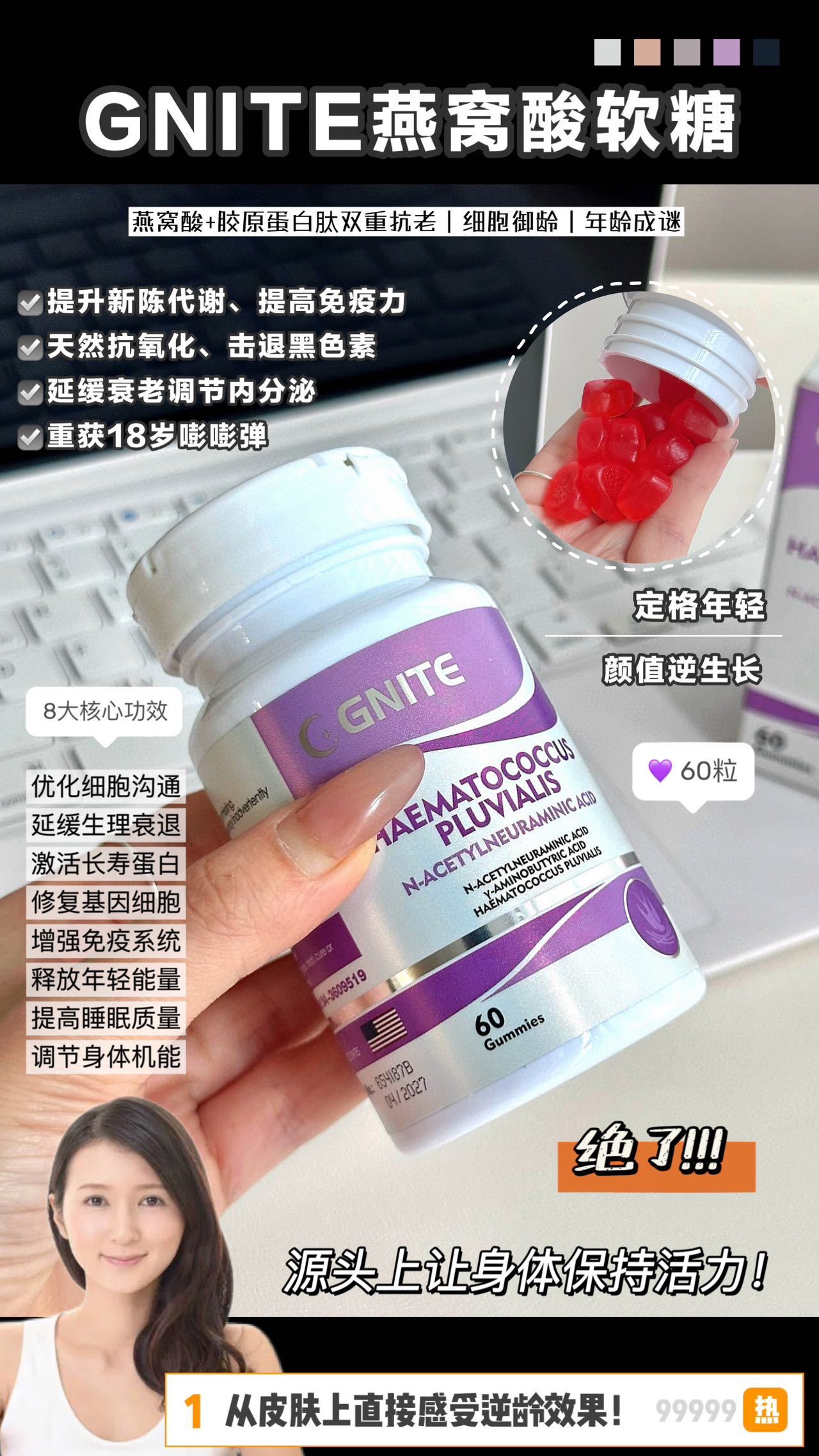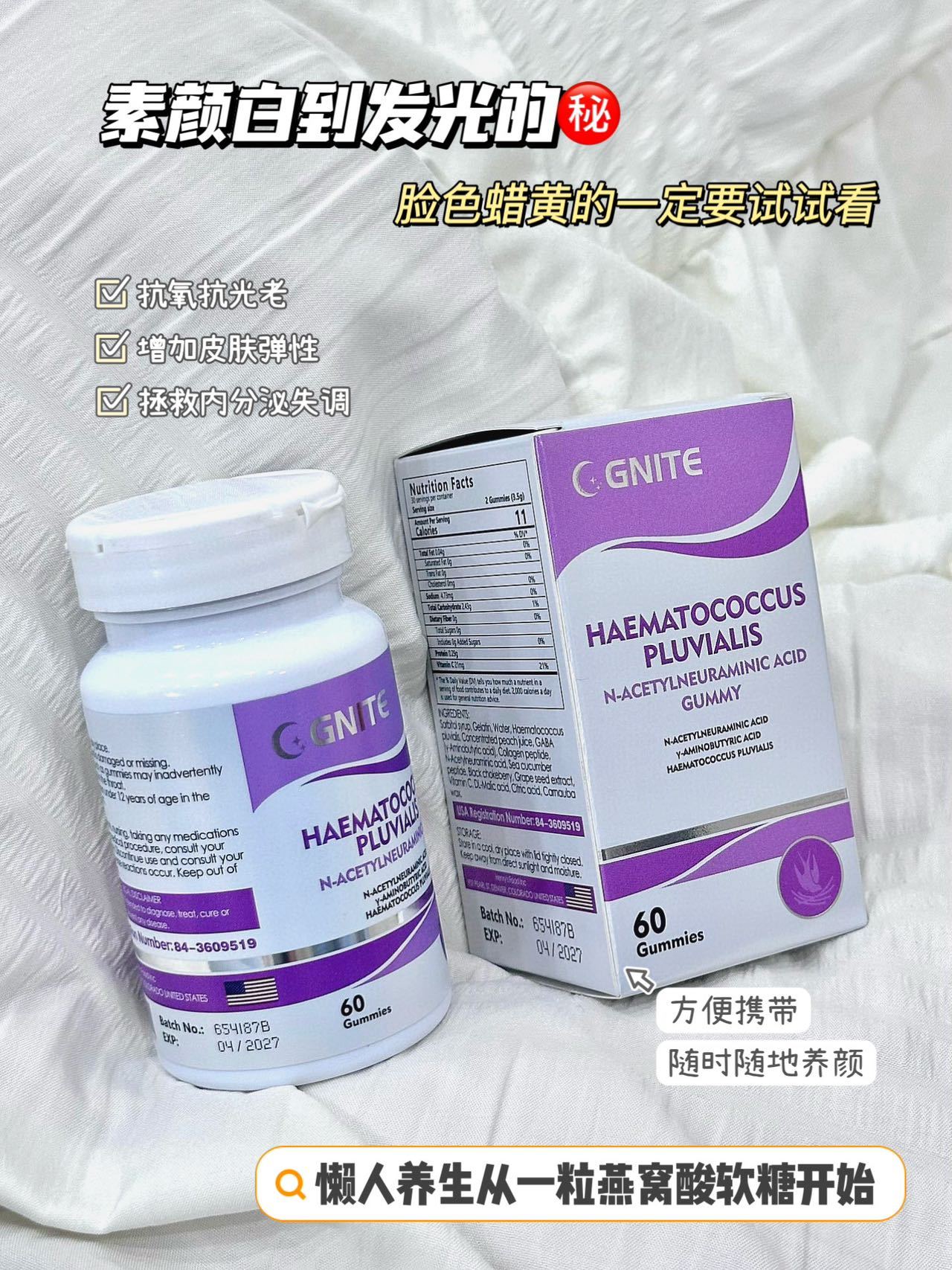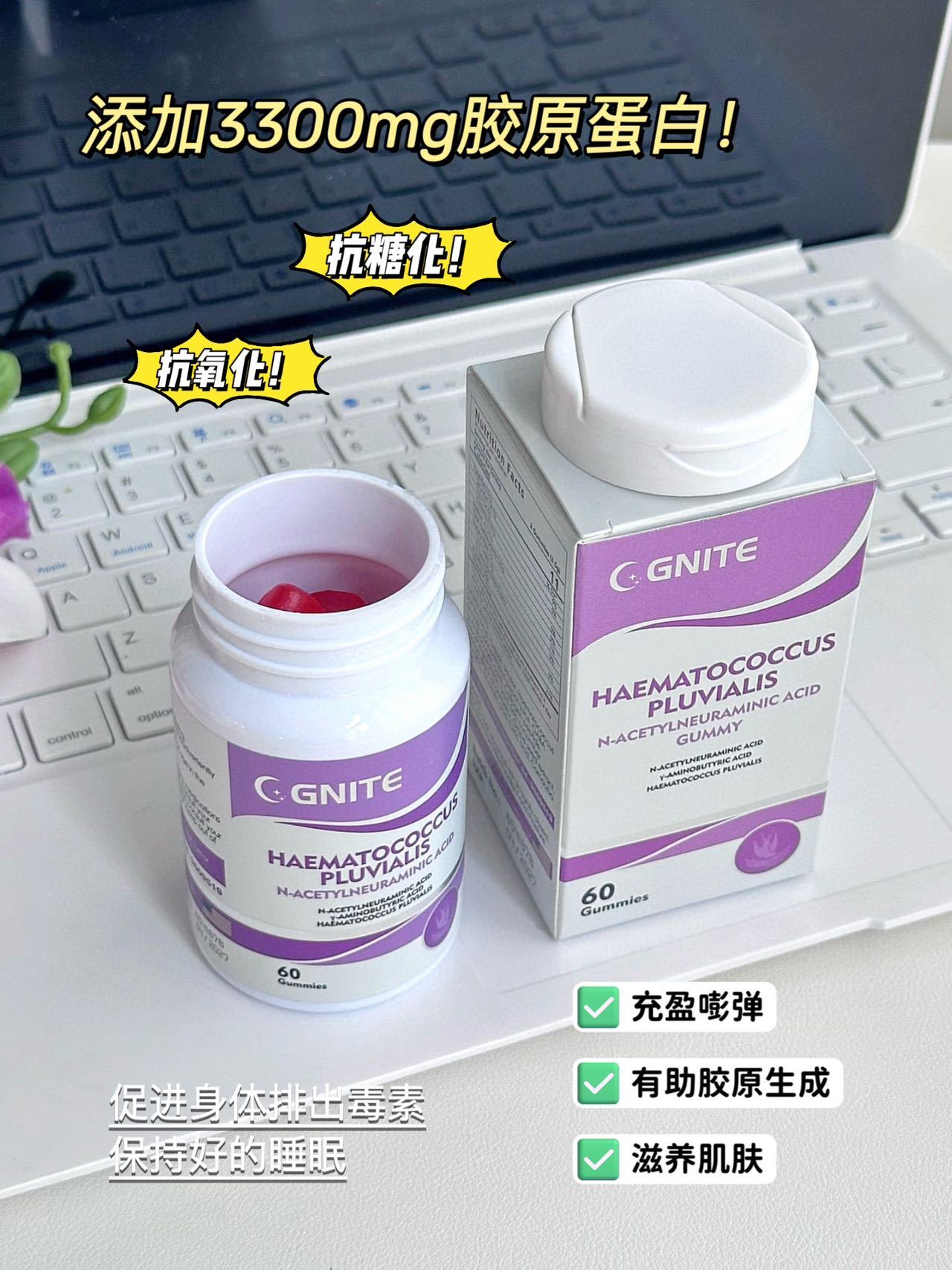 【多妈团购 GNITE燕窝酸软糖】不老女神 冻龄的秘密 燕窝酸雨生红球藻软糖 退黑色素 (拍2瓶送药盒) -合作品牌直发(康斯利)
