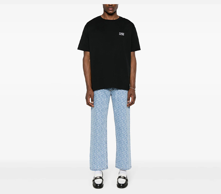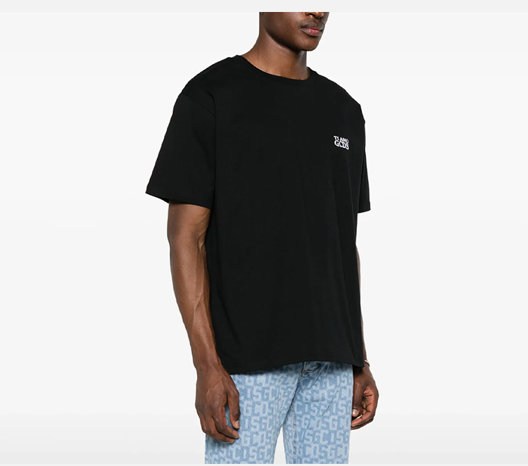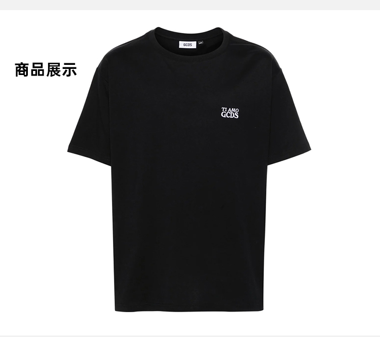 GCDS 男士字母徽标刺绣棉质圆领短袖T恤 黑色 A1CM2317JA399