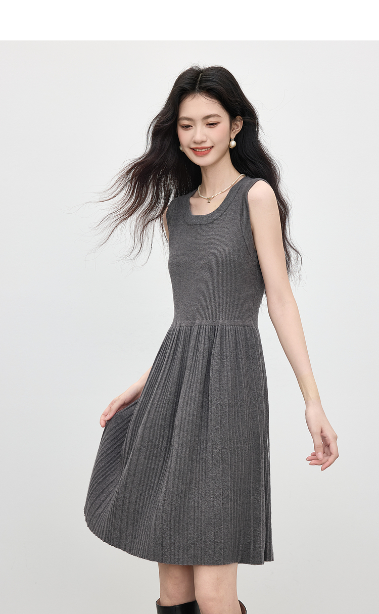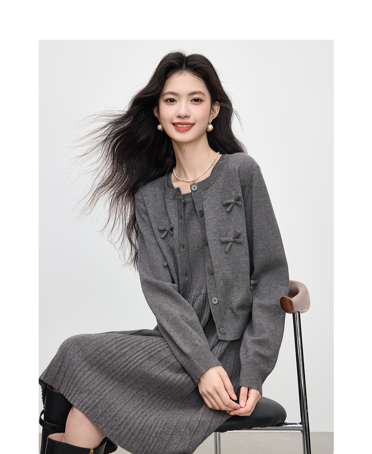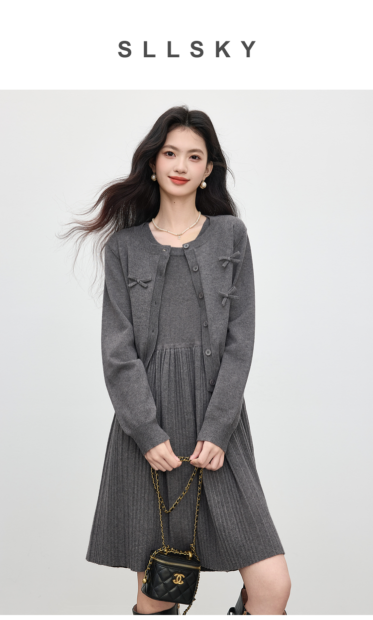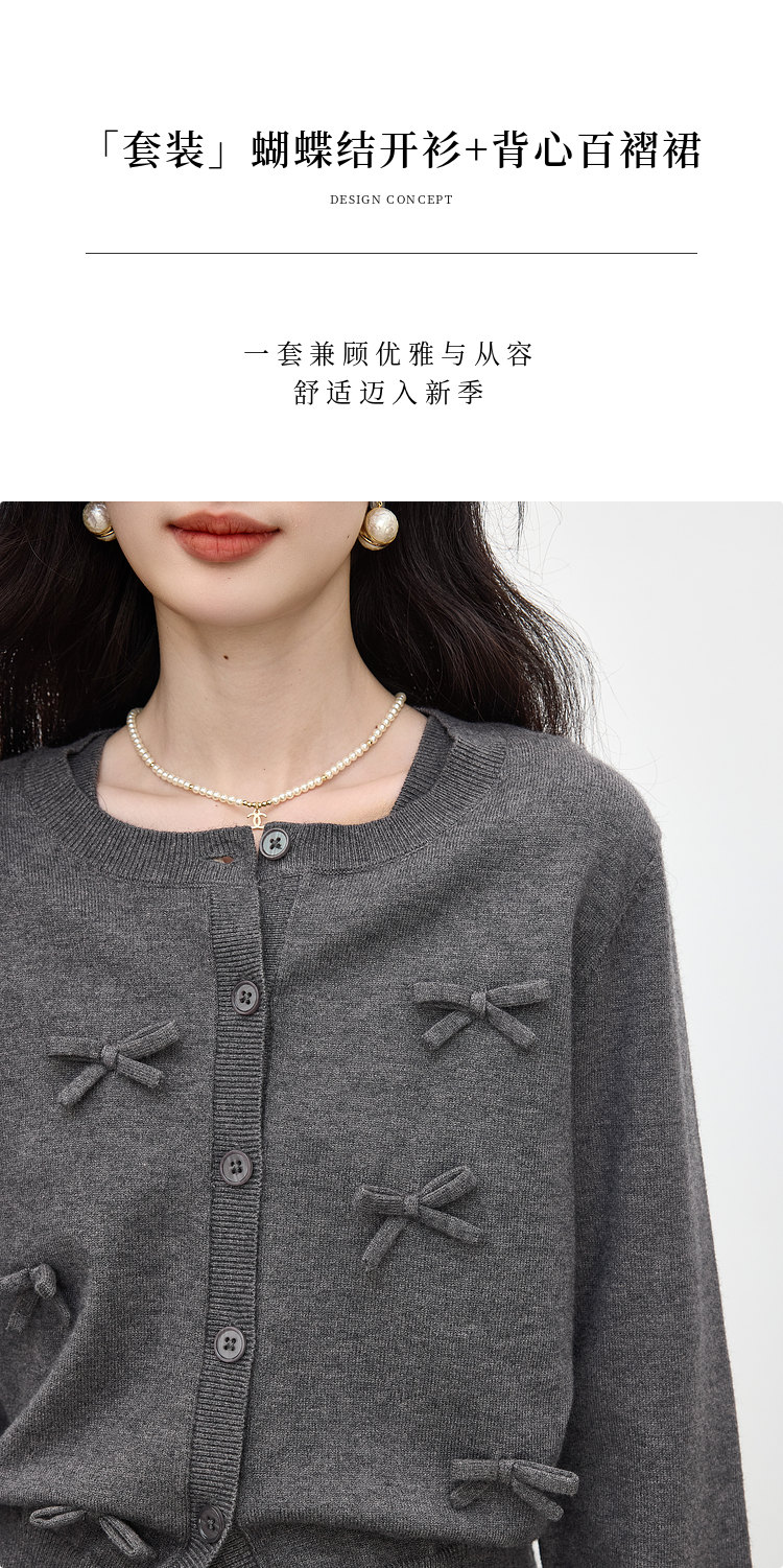 【09/03新品】熙世界格雷系灰色针织开衫连衣裙套装女秋季新款毛衣百褶裙两件套