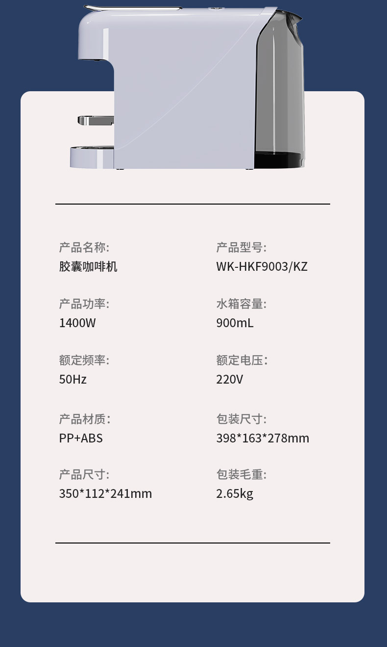 康宁胶囊咖啡机WK-HKF9003/KZ