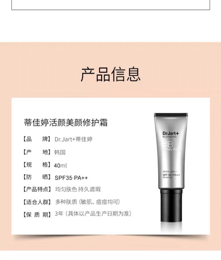 1、产品名称:蒂佳婷Dr.Jart+银管bb霜