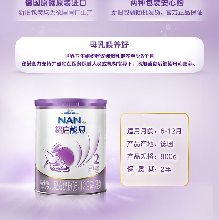 雀巢超启能恩2段奶粉800g