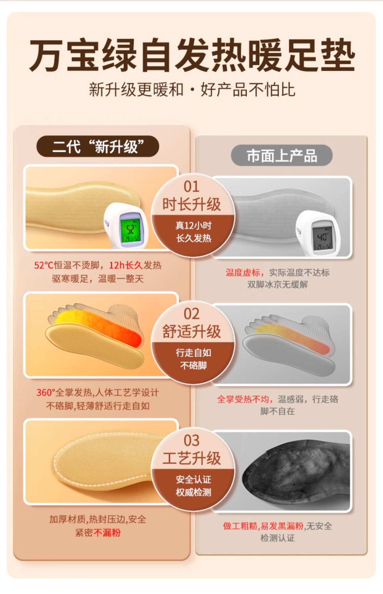 「9.9到手3双」发热鞋垫女自发热贴 自加热鞋垫男可行走冬季保暖艾灸暖足贴暖脚底配饰