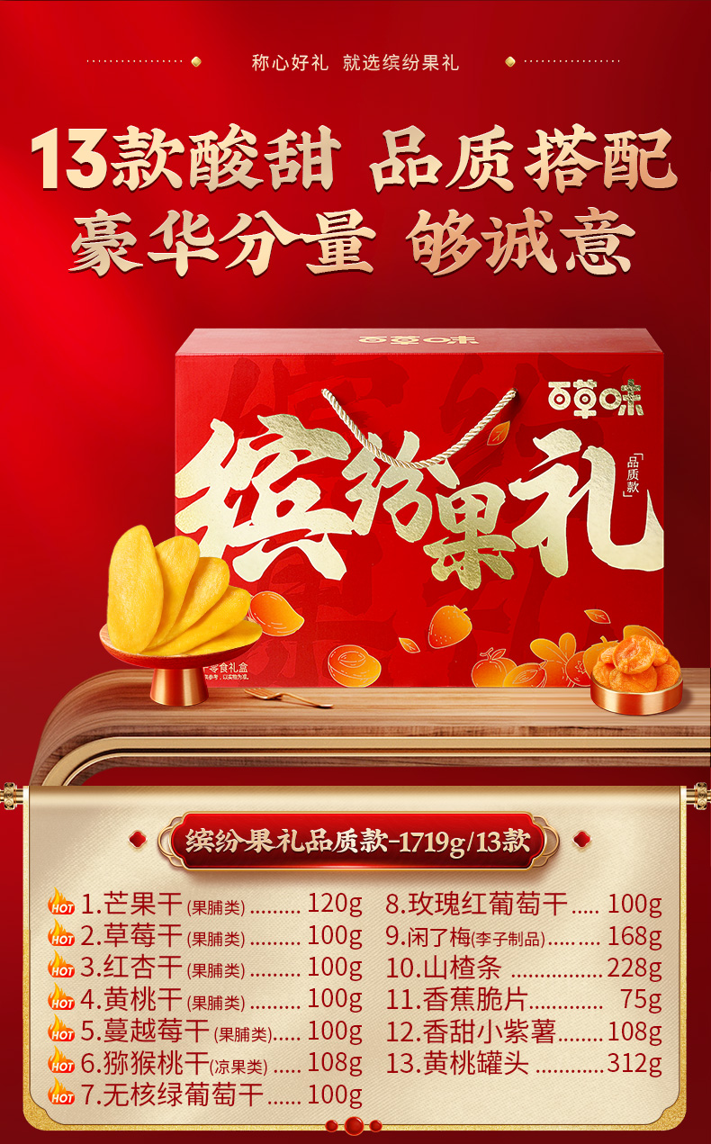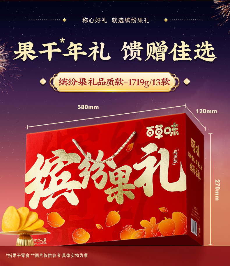 缤纷水果干礼1719g 芒果干果脯 蜜饯休闲零食大礼包 礼盒送礼