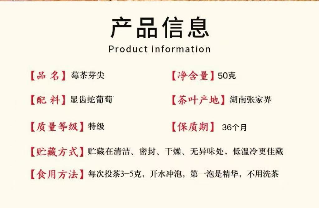 【甄选】湖南张家界莓茶汤色金黄清澈透亮精选鲜嫩茎叶50g/罐