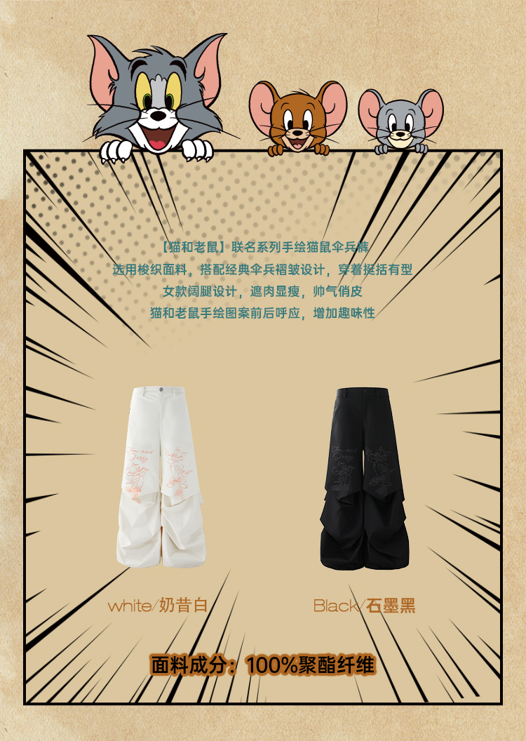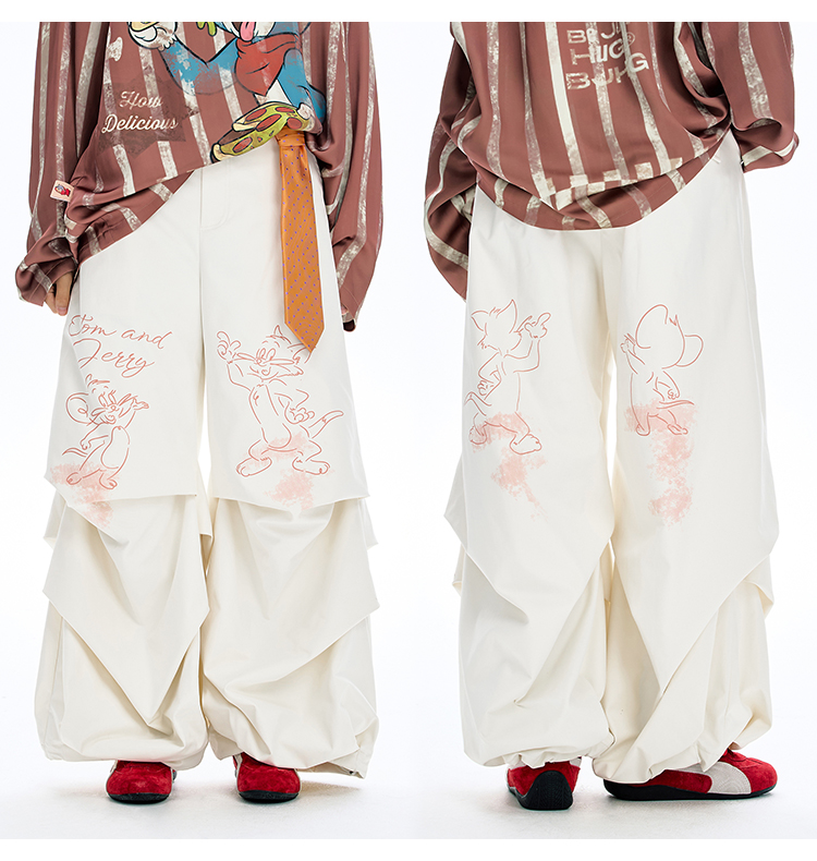 【猫和老鼠联名】BJHG不计后果休闲裤女款秋美式复古印花伞兵裤子