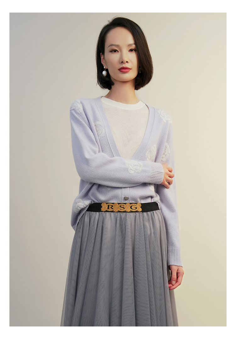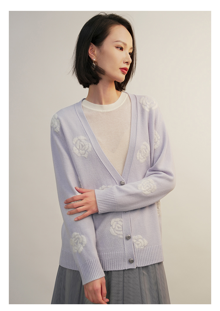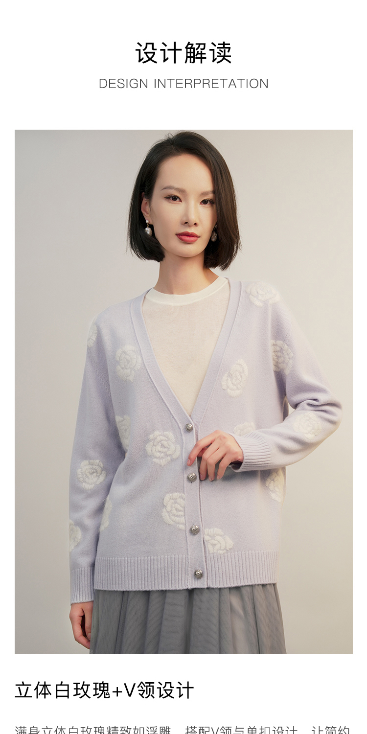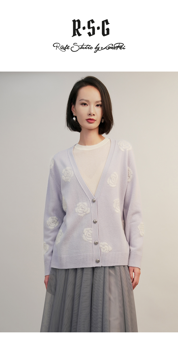 郭培成衣RSG2025秋冬新款「晴空玫瑰」提花V领针织开衫