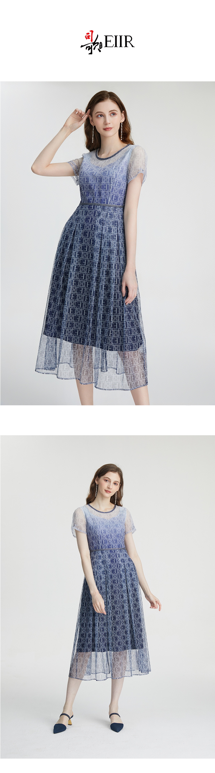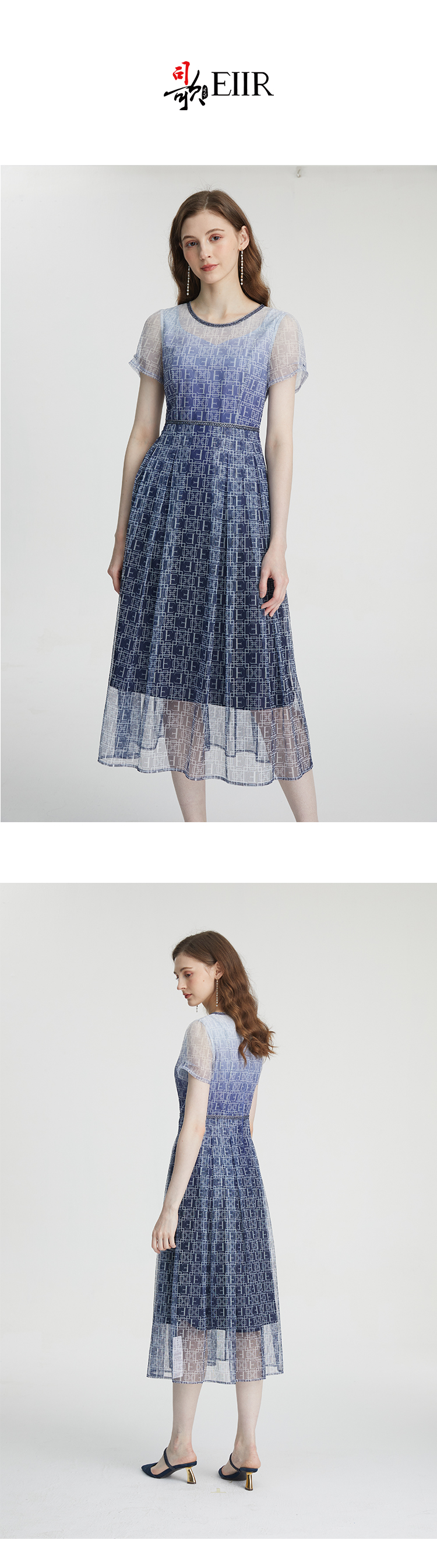 司歌渐变蕾丝重工收腰气质连衣裙A911225X