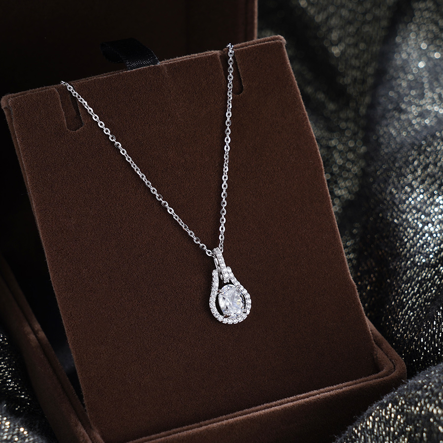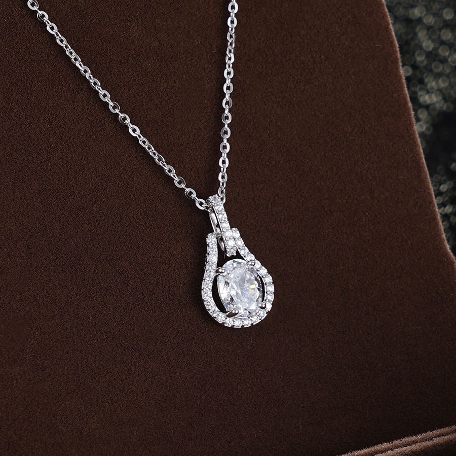 【寓意】:锆石环绕密嵌,勾勒出梨形吊坠的轮廓。立体造型、通透形态,构筑灵动画境。即便搭配素雅衣衫,亦能绽放动人光芒。