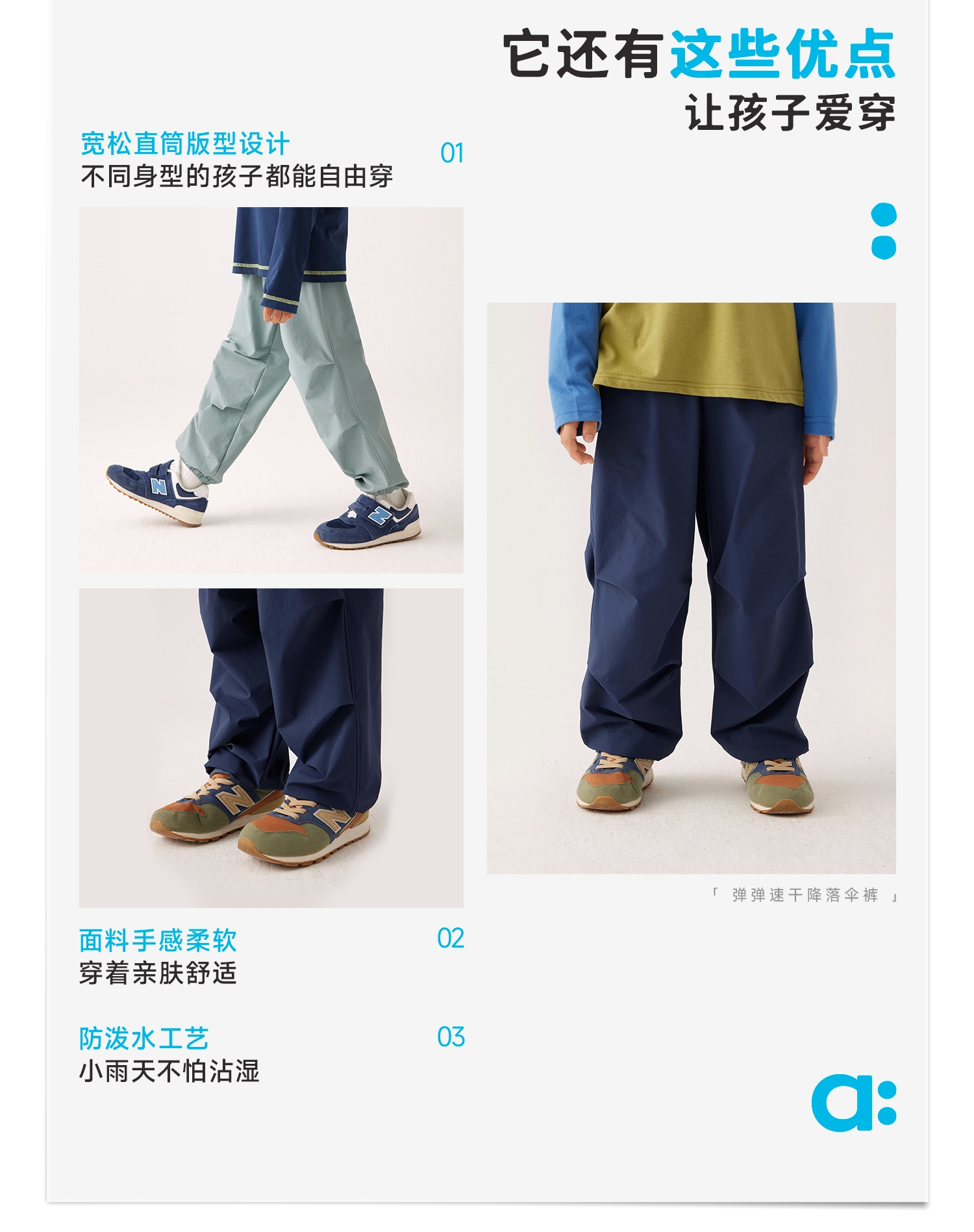 【粉丝专属】幼岚童装「弹弹速干」降落伞裤速干防泼水24秋季新款儿童裤子