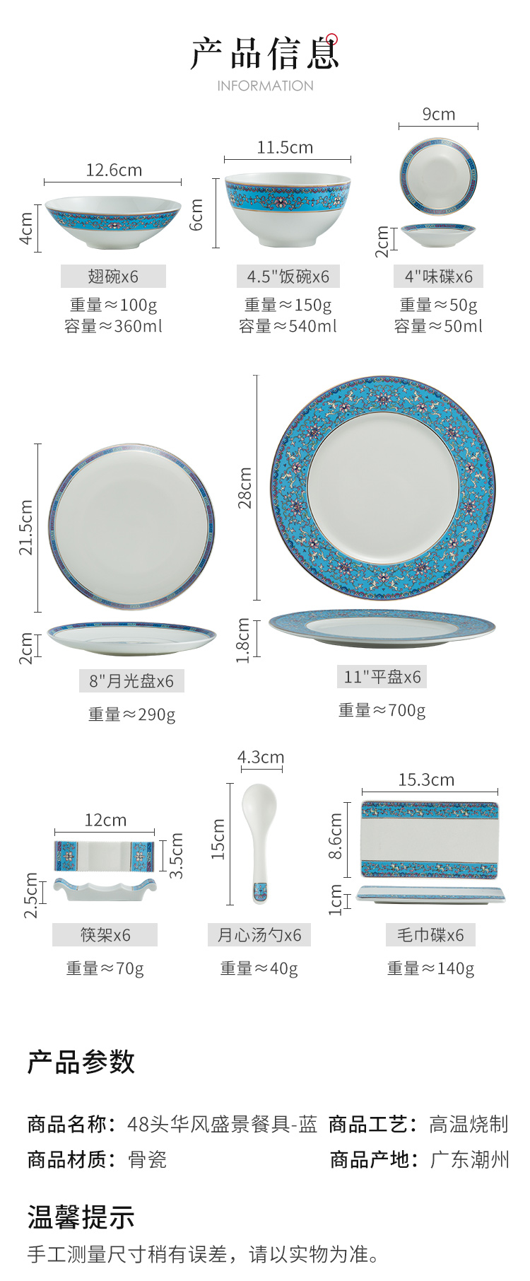 48头华风盛景(蓝)台面餐具套装