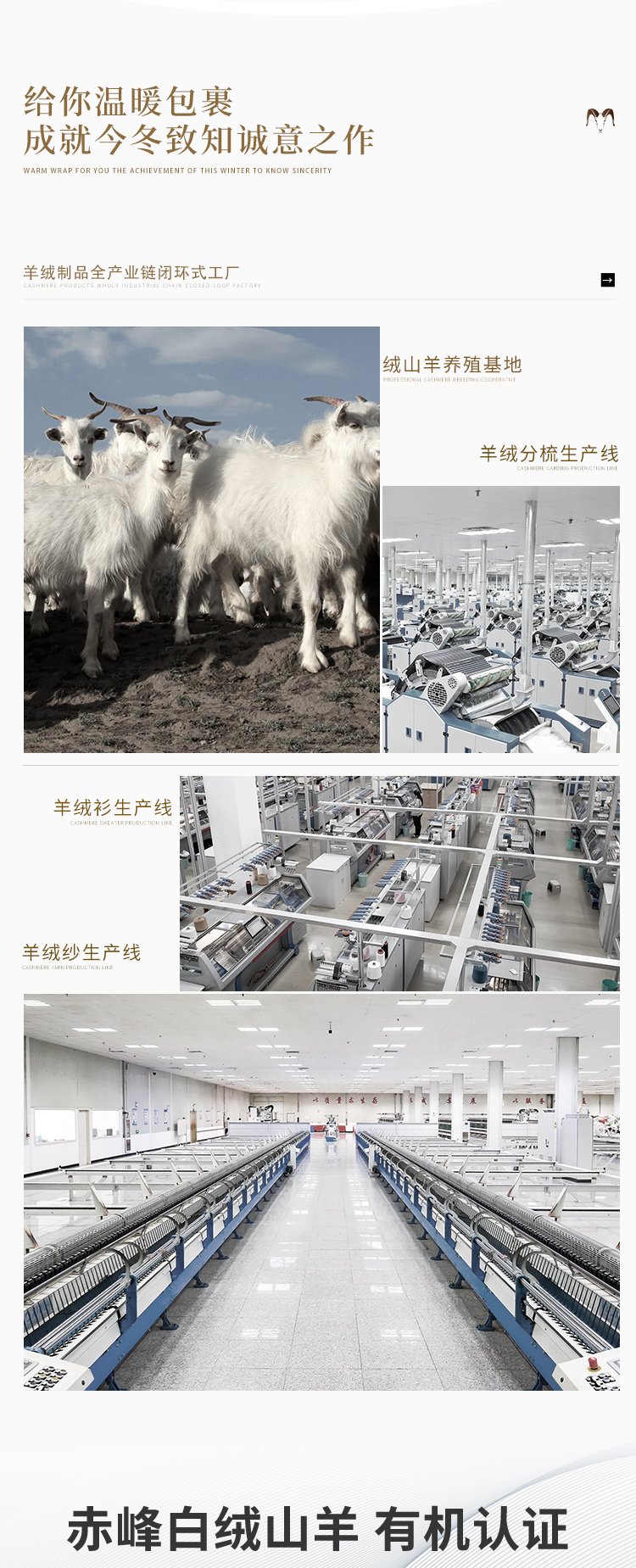 东黎羊绒是赤峰东荣集团自主品牌,自有牧场/羊绒制品全产业链优势,实现了羊绒从“牧场”到“商场”的华丽转变。