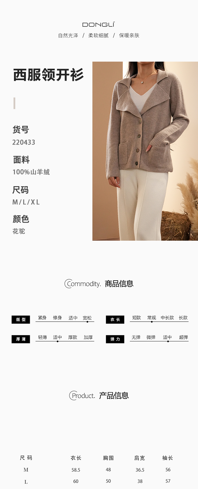 DONGLI&张继成 联名款 山羊绒 东黎羊绒 女士西服领开衫气质百搭 220433
