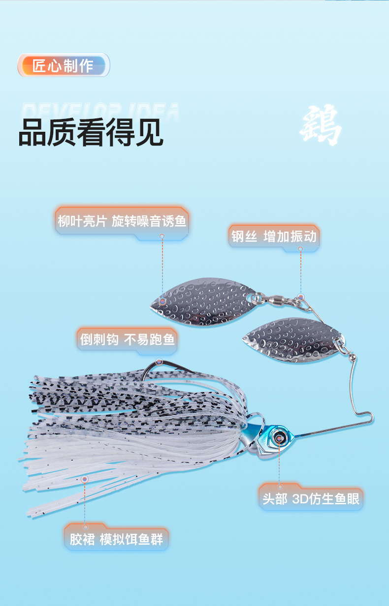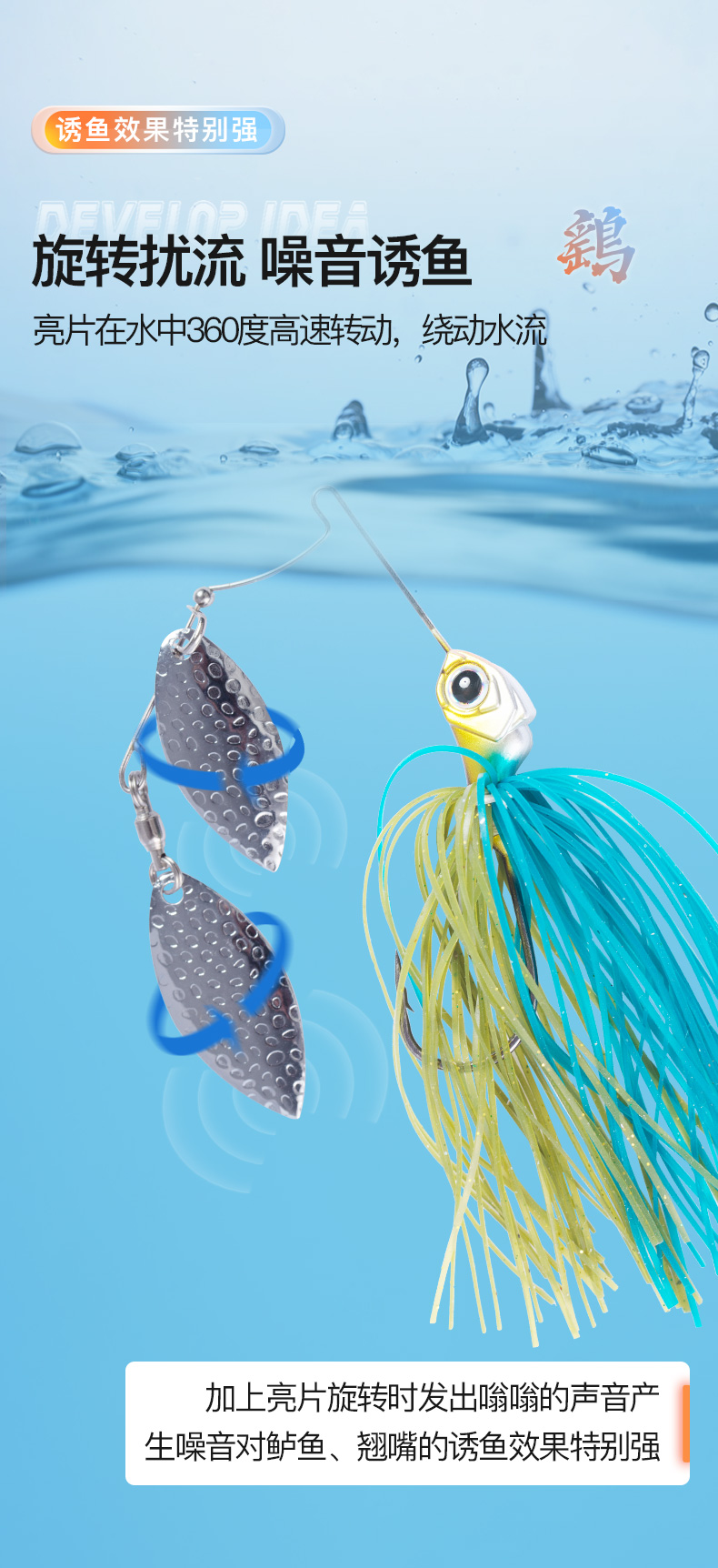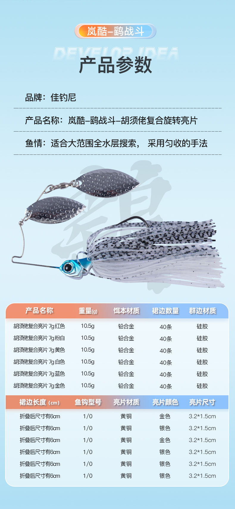 佳钓尼鹞胡须佬路亚饵复合旋转亮片软饵专攻鲈鱼黑鱼巧嘴路亚硬饵