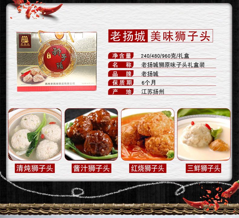 老杨城 | 正宗扬州特产 原味蟹黄狮子头 手工大斩肉猪肉圆四喜丸子 即食肉丸 包邮