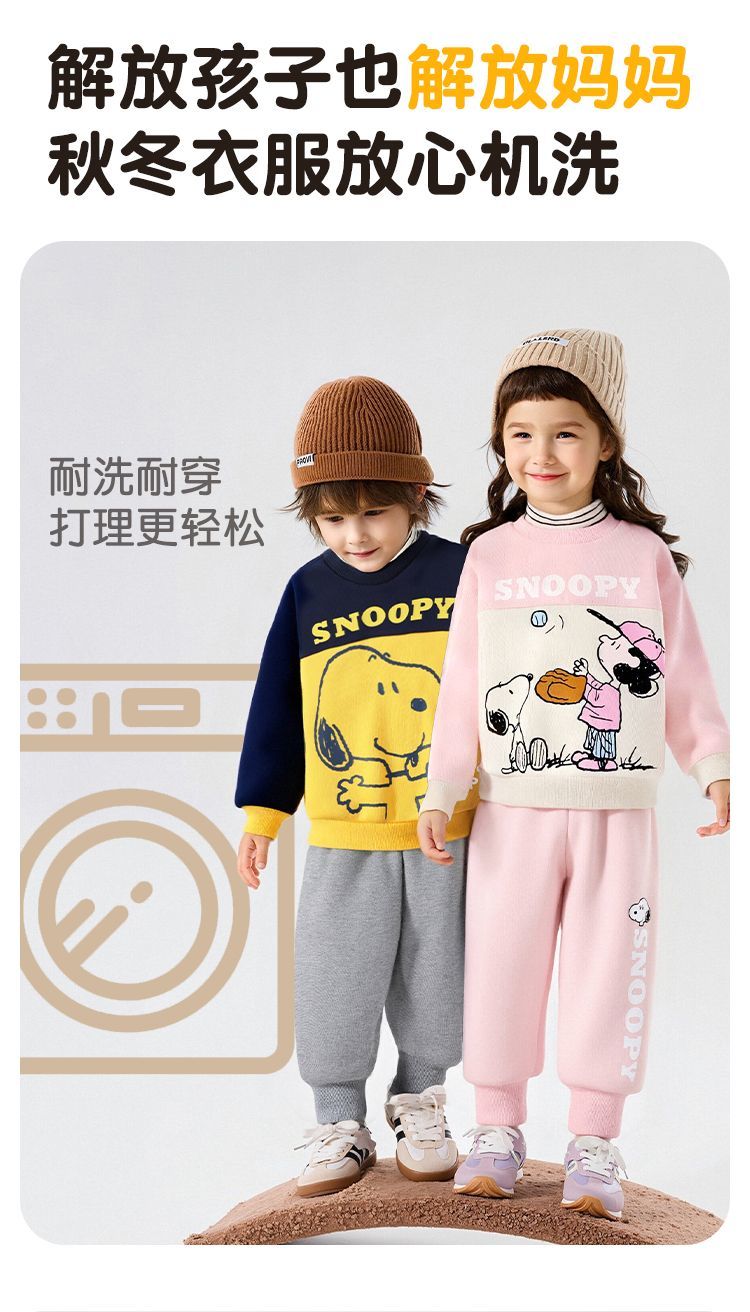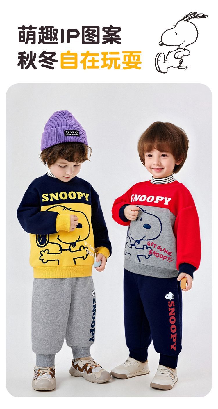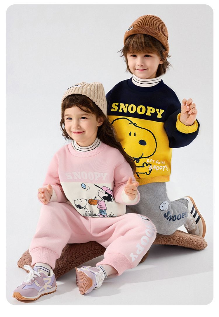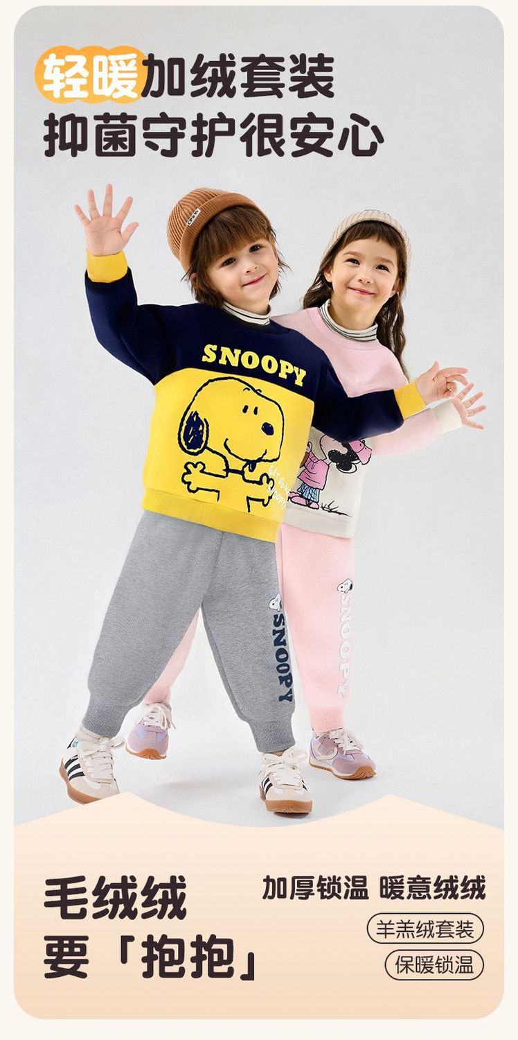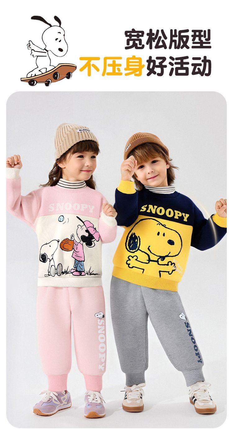 【加绒两件套】【90-130】【史努比】男女童加绒卫衣卫裤套装