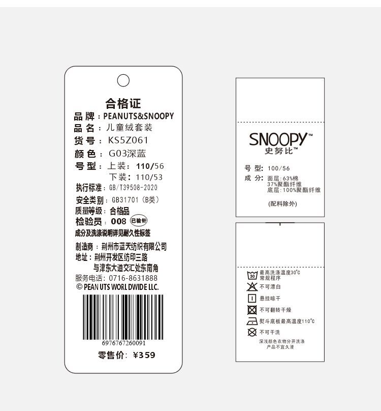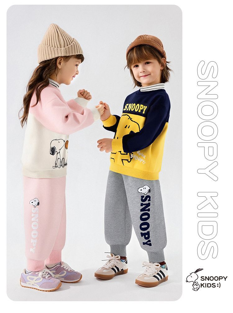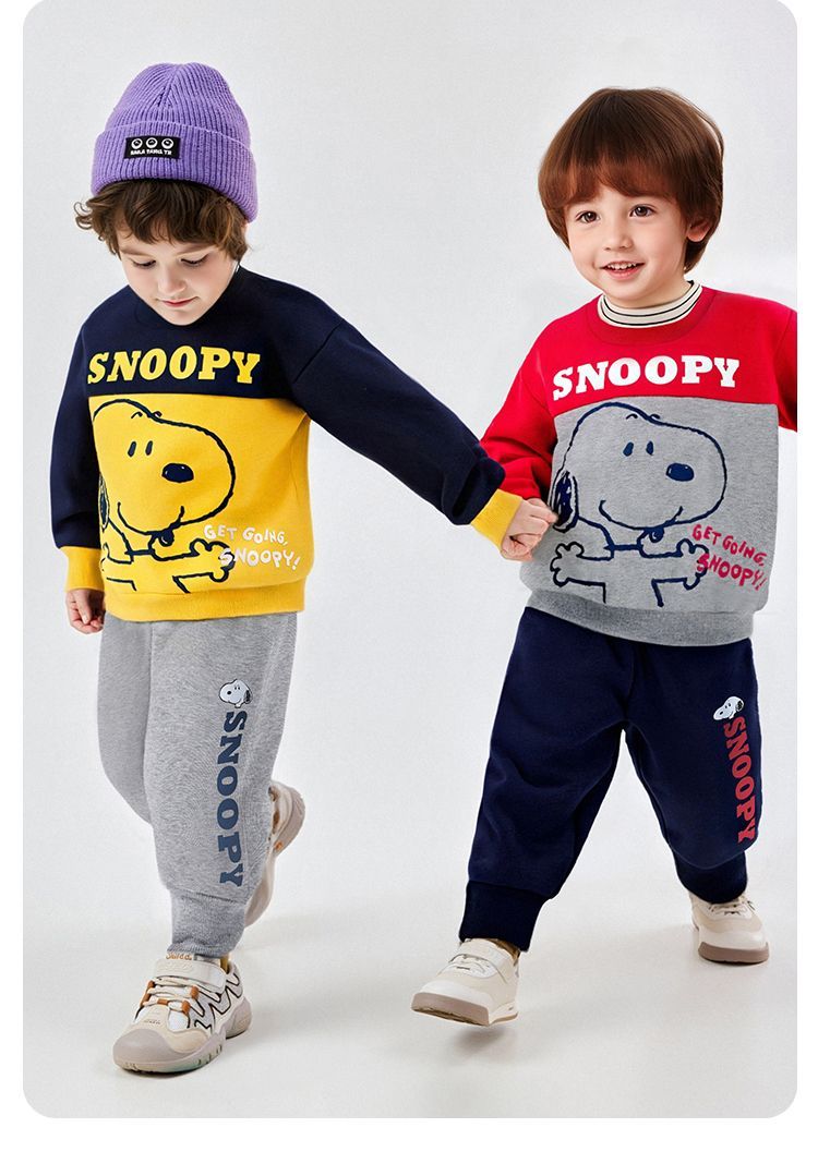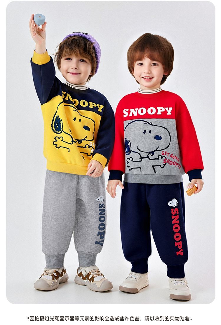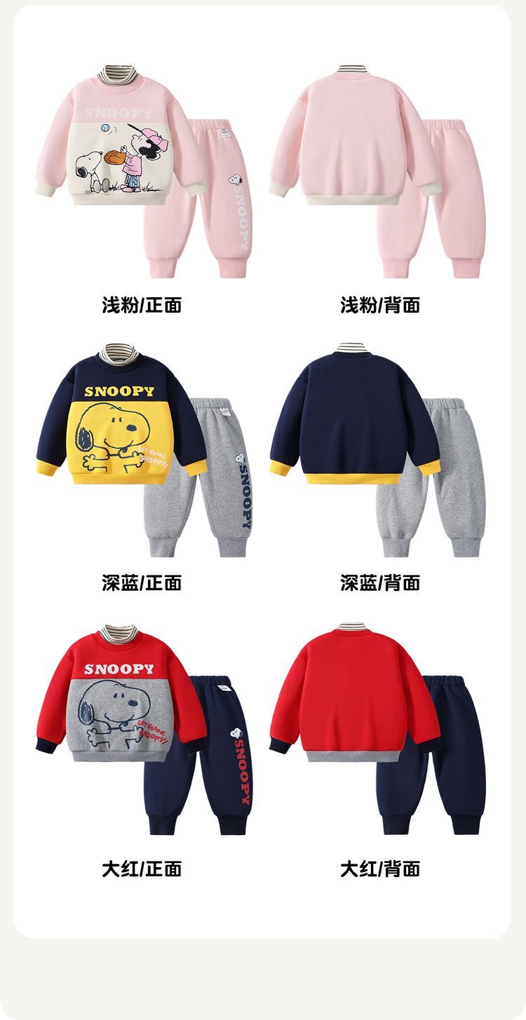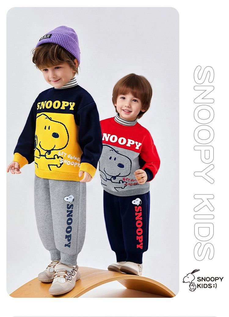 【加绒两件套】【90-130】【史努比】男女童加绒卫衣卫裤套装