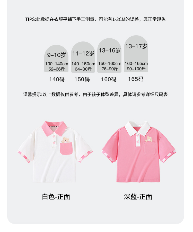 【140-165】【精典泰迪】女童夏季短袖POLO衫翻领T恤