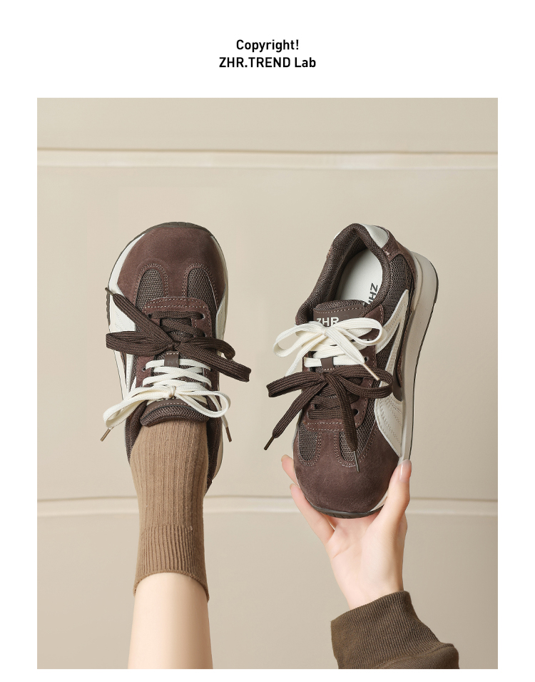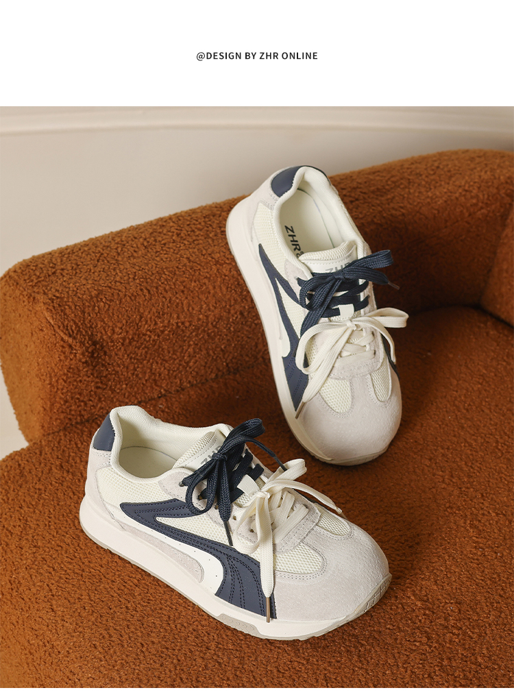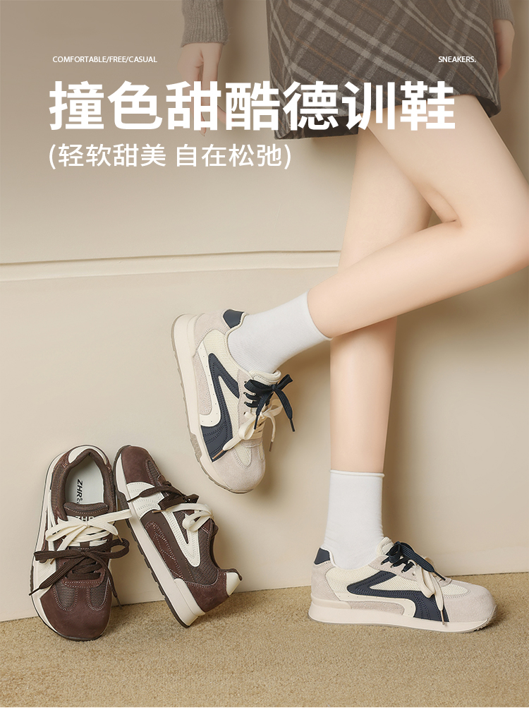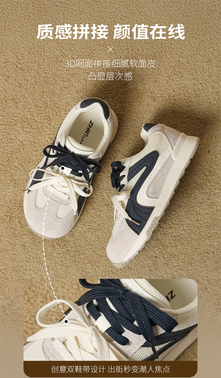 ZHR则则圆头双鞋带厚底德训鞋经典休闲百搭显脚小秋季网面鞋KD87