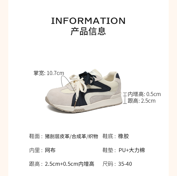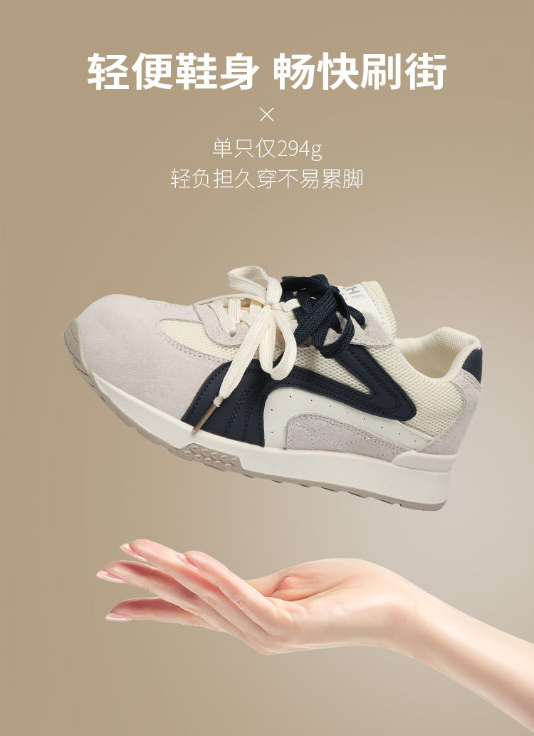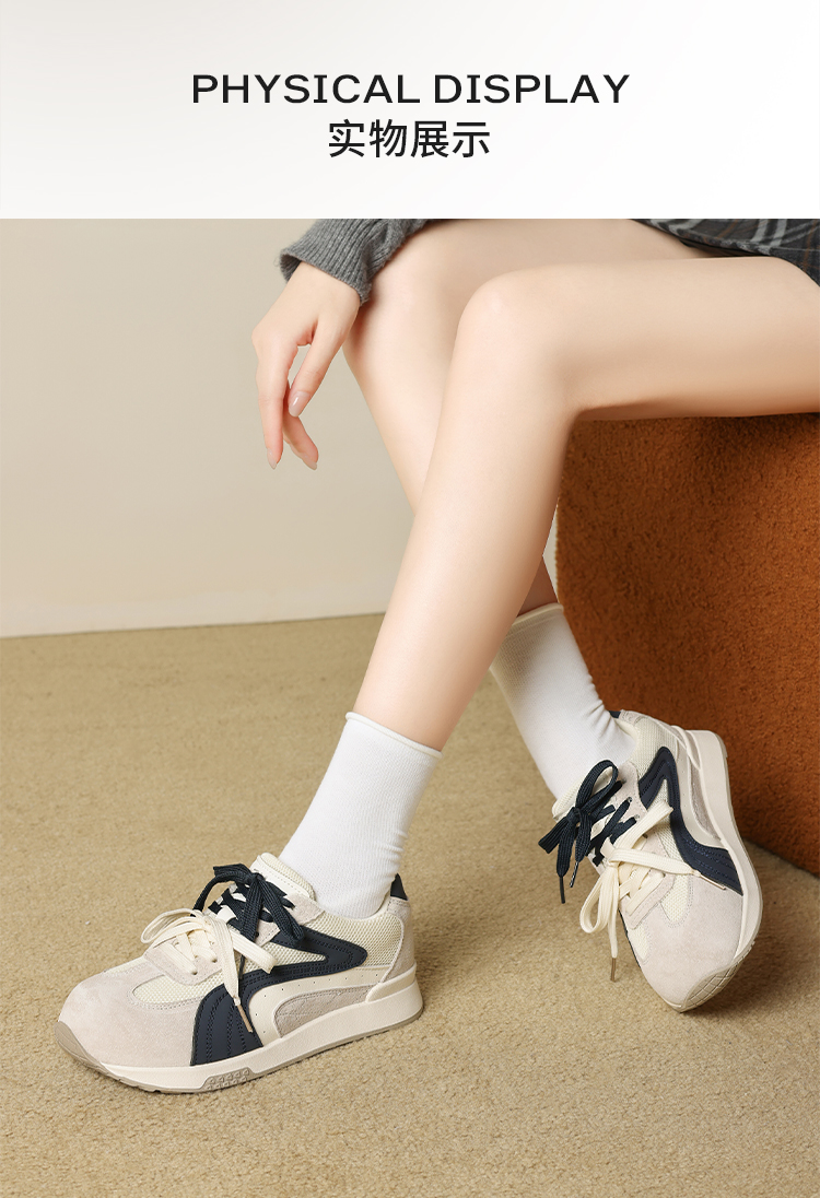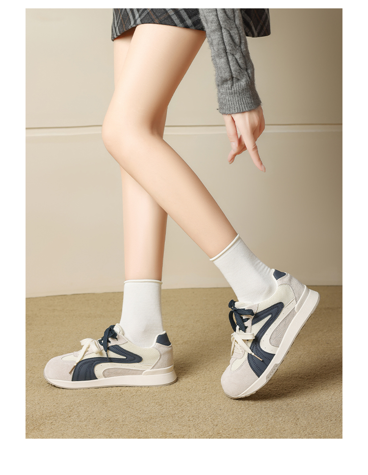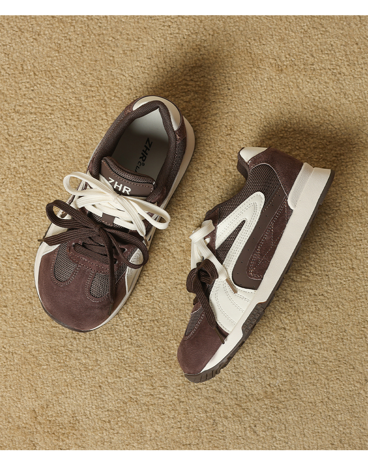 ZHR则则圆头双鞋带厚底德训鞋经典休闲百搭显脚小秋季网面鞋KD87