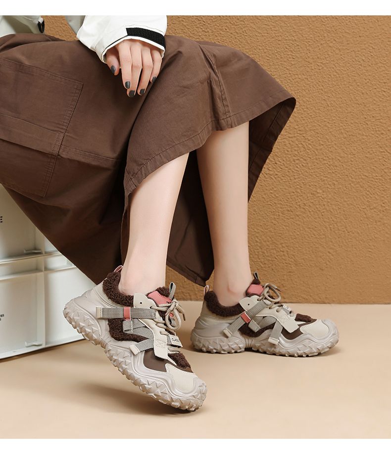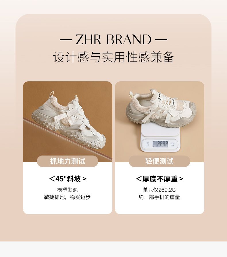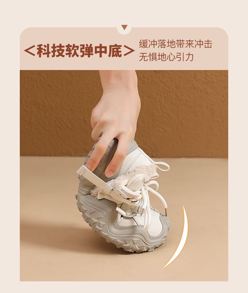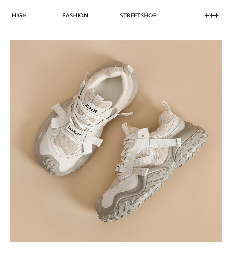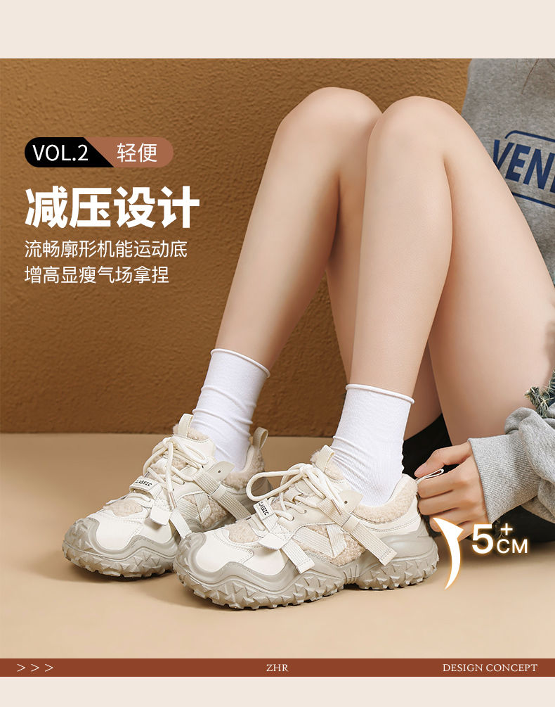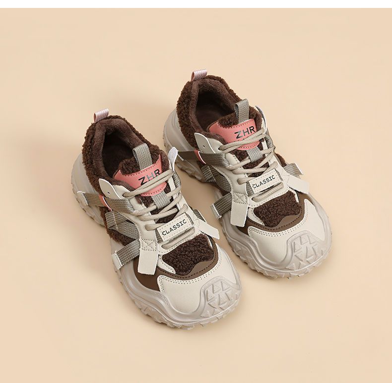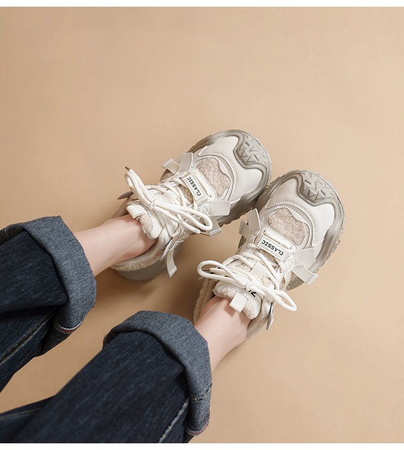 ZHR则则加绒厚底运动休闲鞋女冬季雪地靴保暖棉鞋大头增高老爹鞋