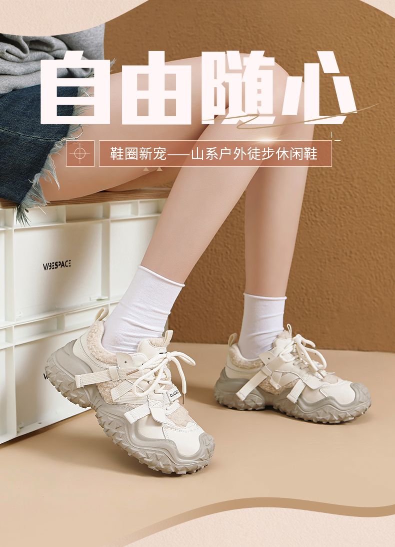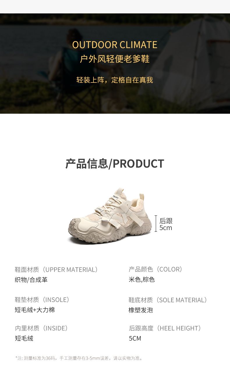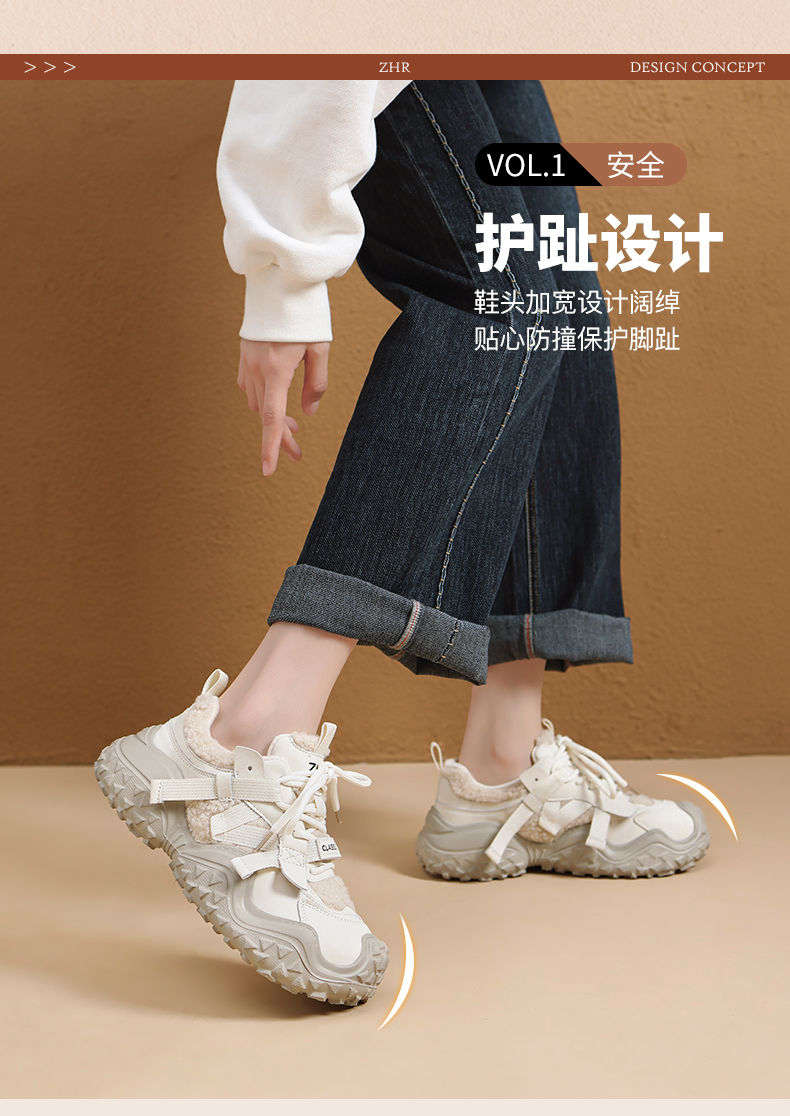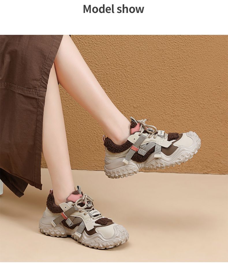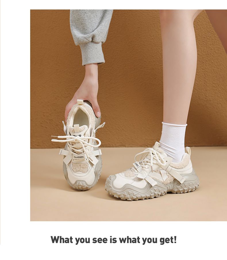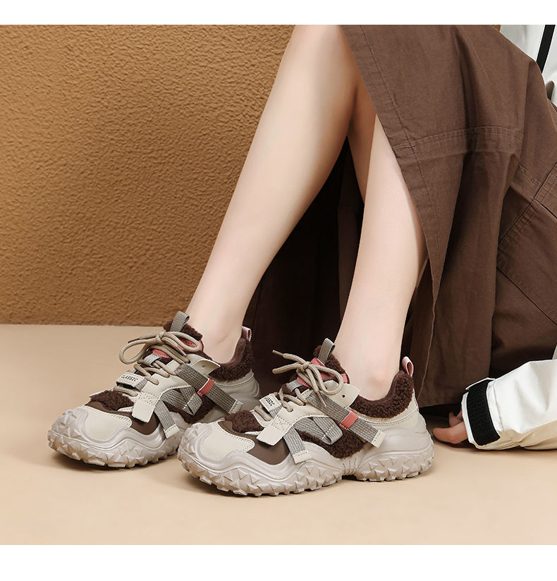 ZHR则则加绒厚底运动休闲鞋女冬季雪地靴保暖棉鞋大头增高老爹鞋