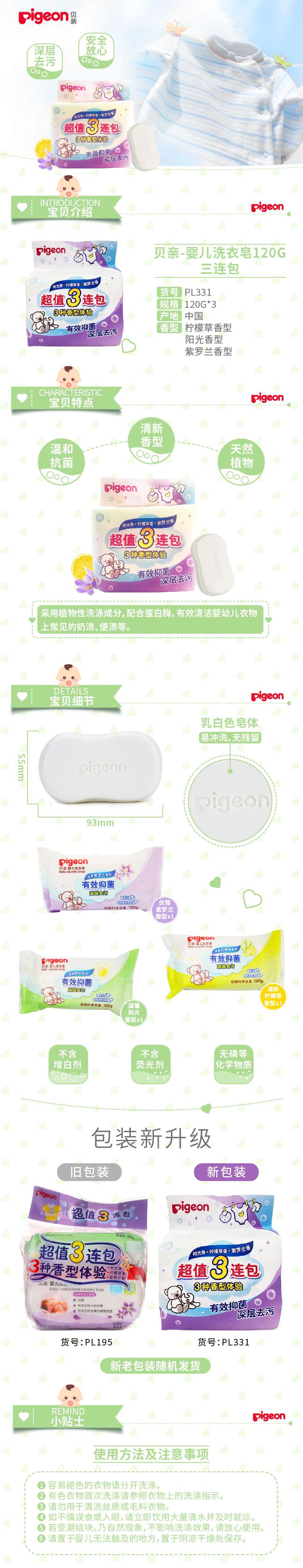 贝亲婴儿抑菌洗衣皂 120G*3块 PL331