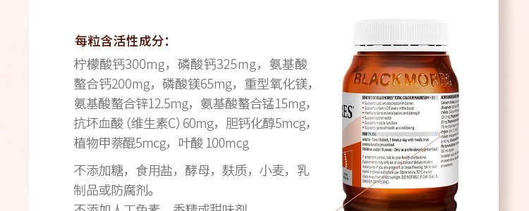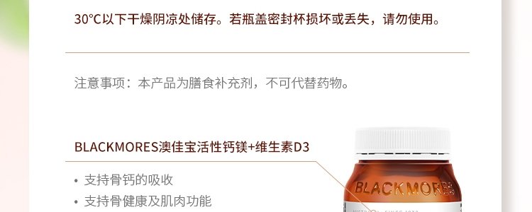 【保税】澳洲 澳佳宝Blackmores活性钙镁片D3 200片
