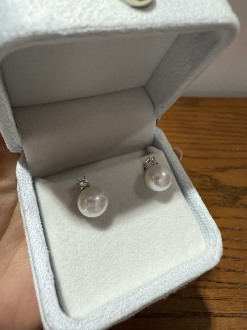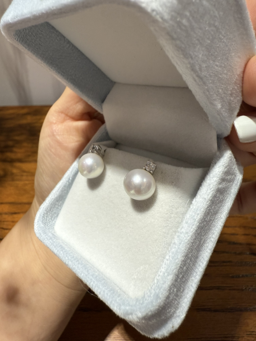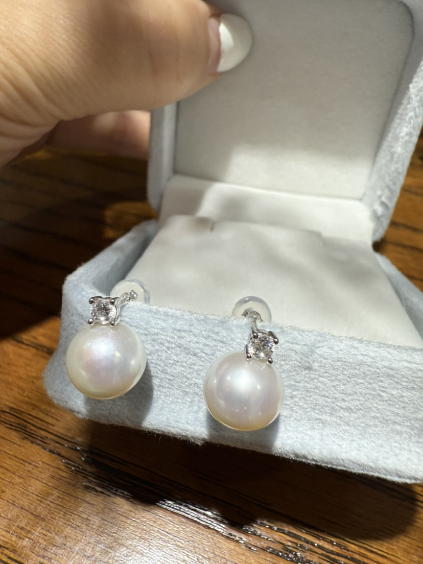 84-7 统货/直发 王妃款珍珠耳钉 纯银高碳钻 9-10mm极光近正圆 爱迪生珍珠 耳钉