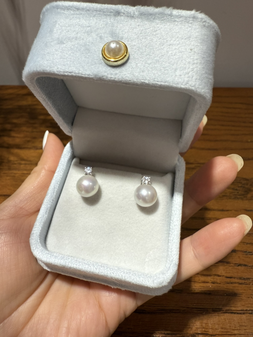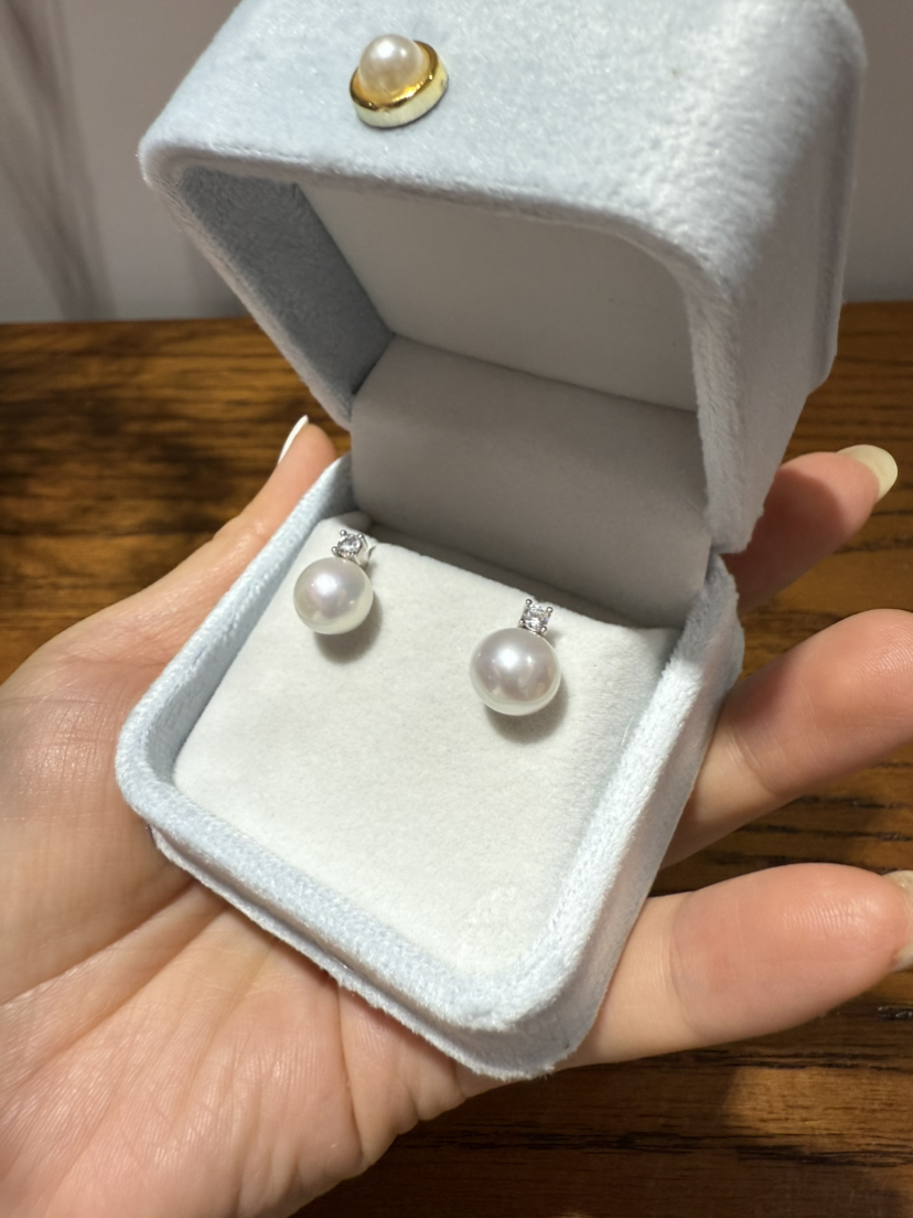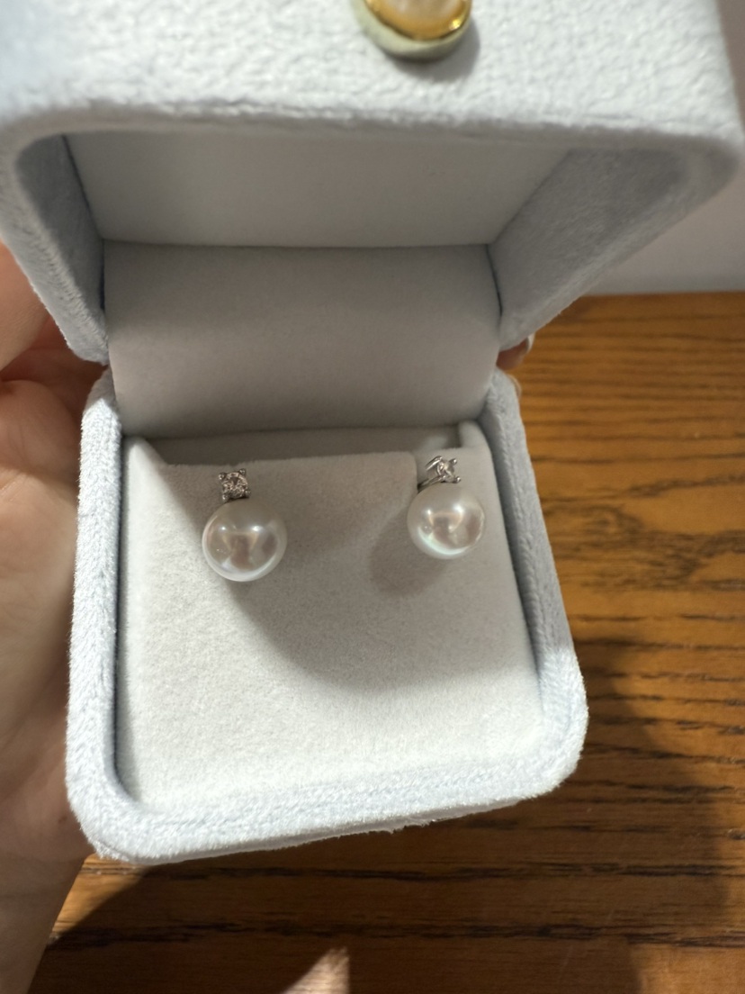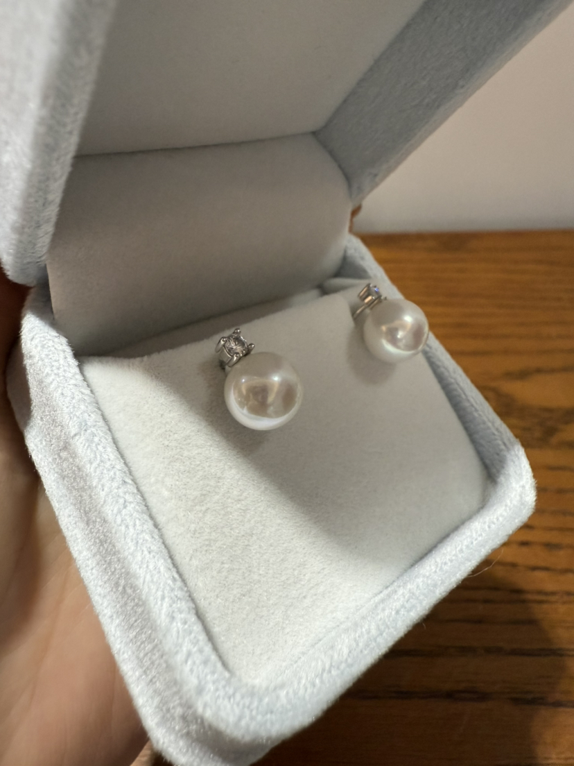 84-7 统货/直发 王妃款珍珠耳钉 纯银高碳钻 9-10mm极光近正圆 爱迪生珍珠 耳钉