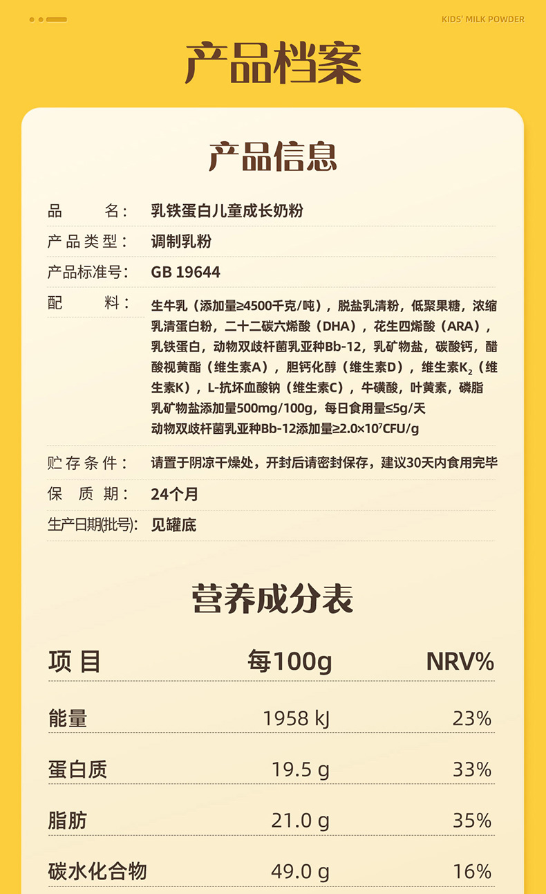 认养一头牛乳铁蛋白儿童奶粉 700g/700g*2