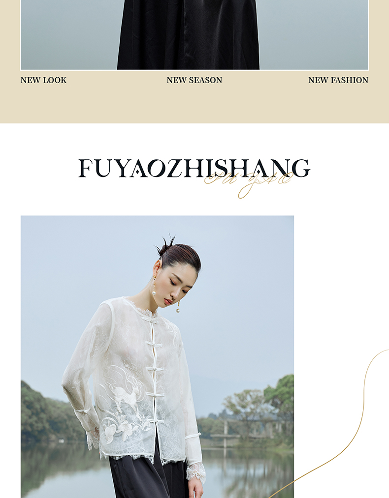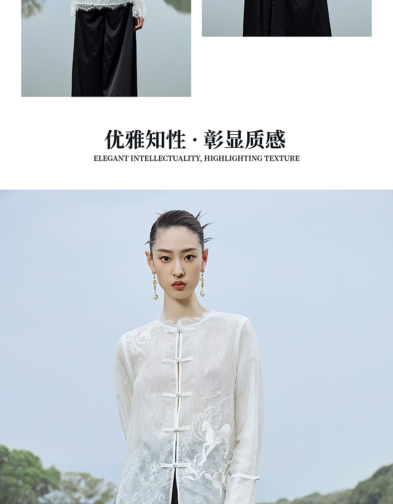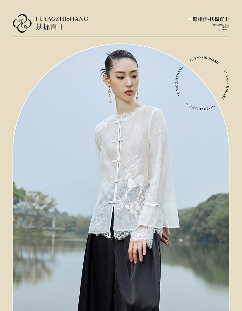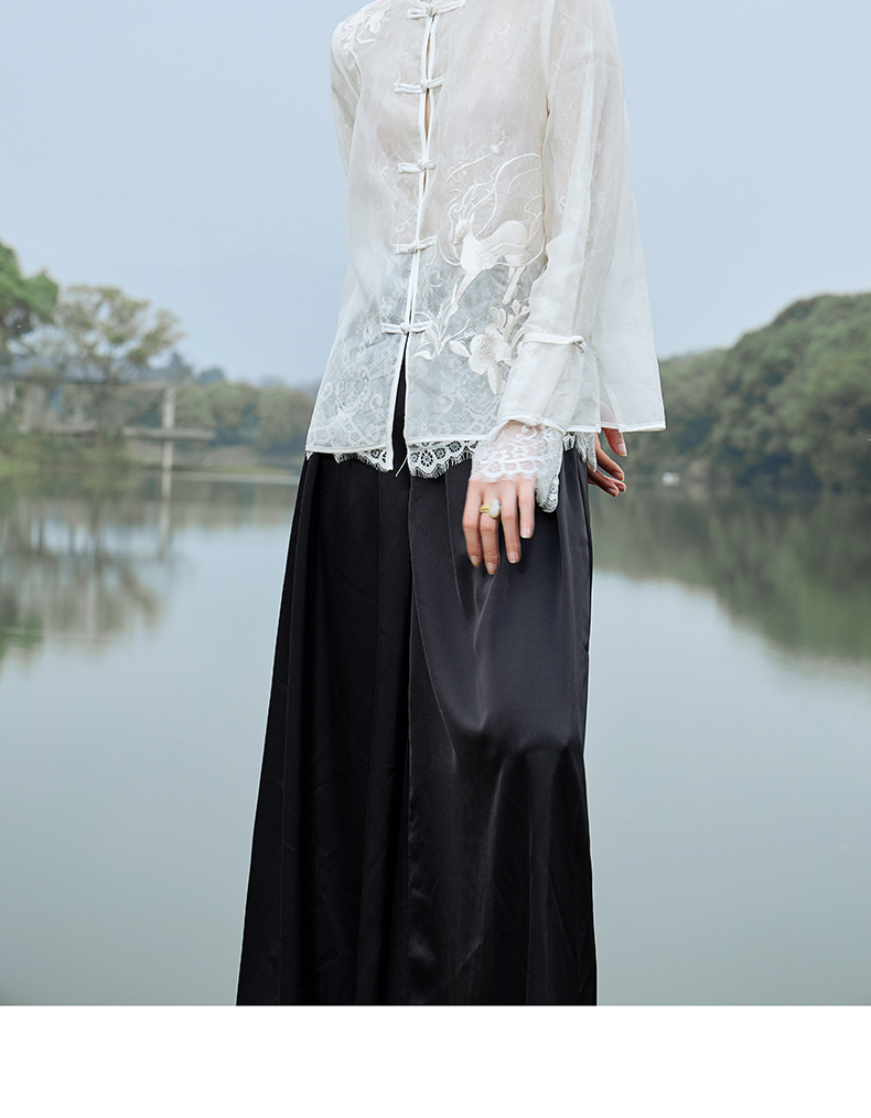 IWY/扶摇系列 夏季国风盘扣蕾丝刺绣衬衫23FYB135