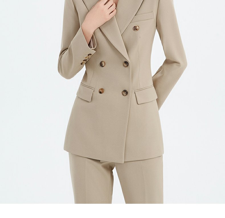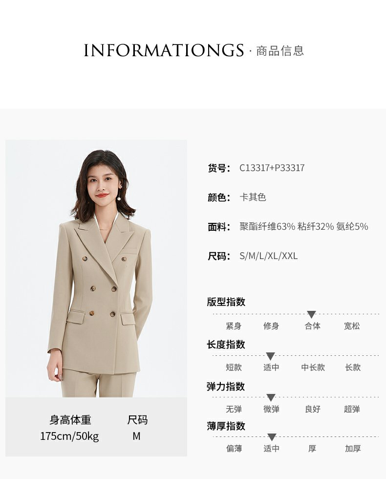 IWY/优雅卡其色西装套装女休闲宽松职场律师工作服气质面C13317+P33317