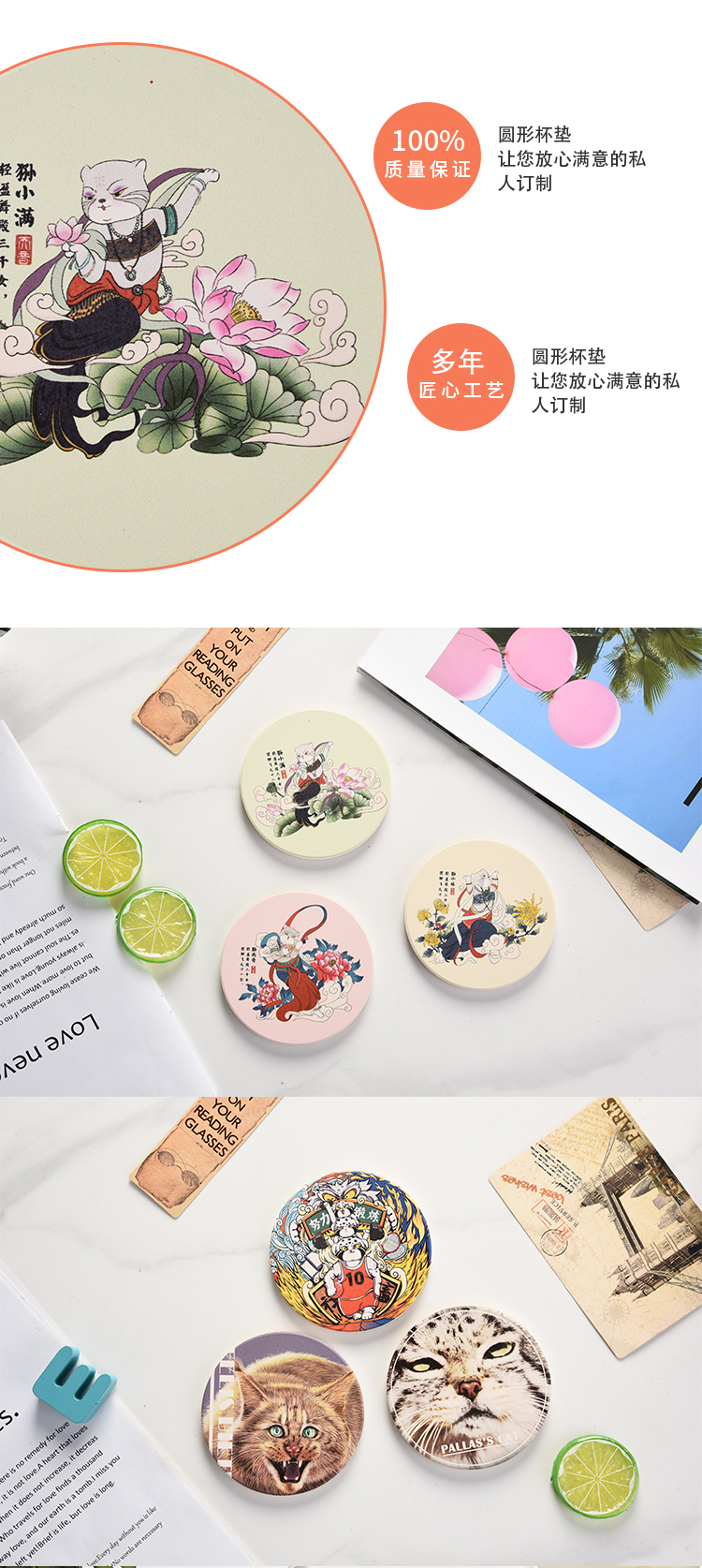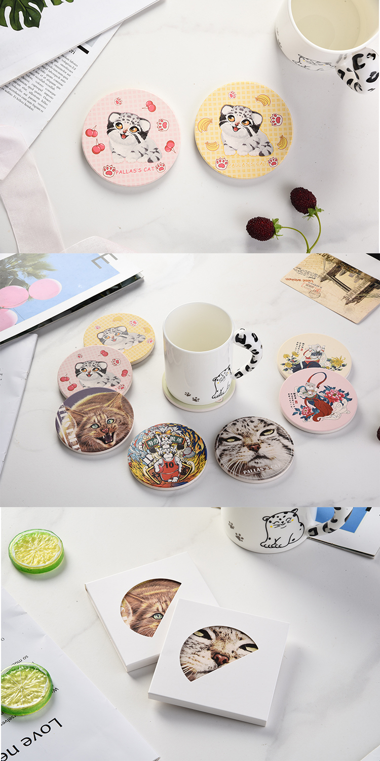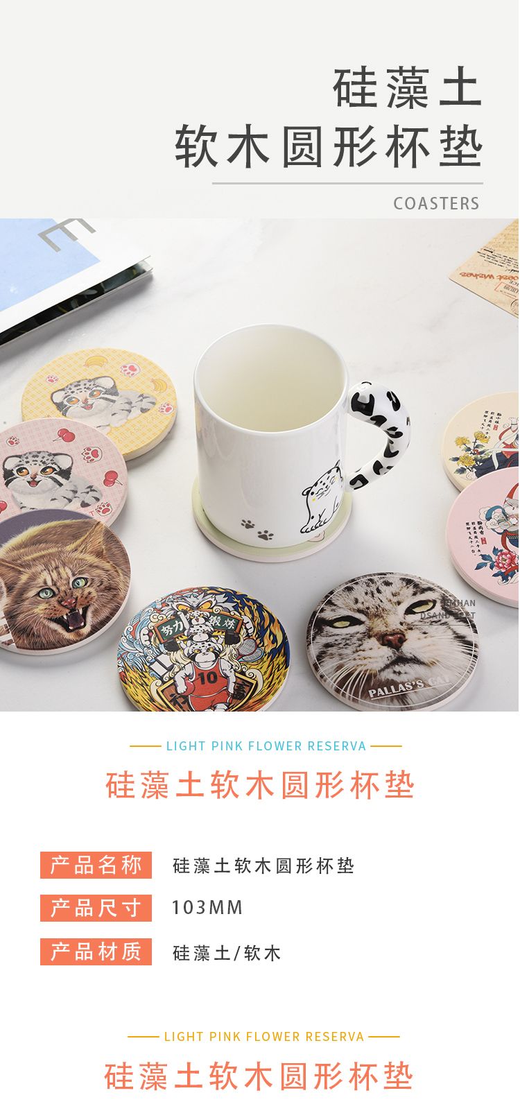 兔狲雪豹硅藻土软木卡通实用圆形防烫茶具杯垫