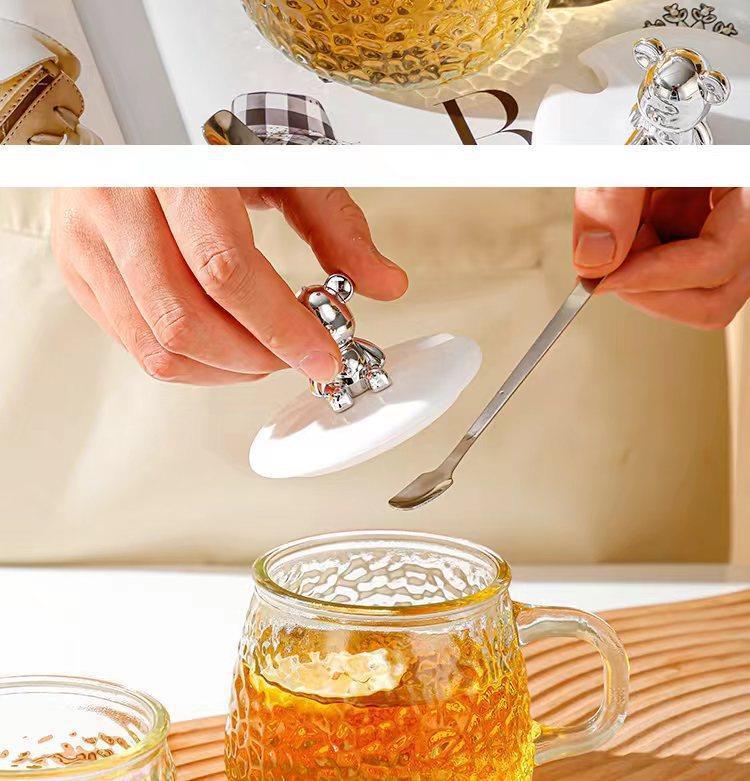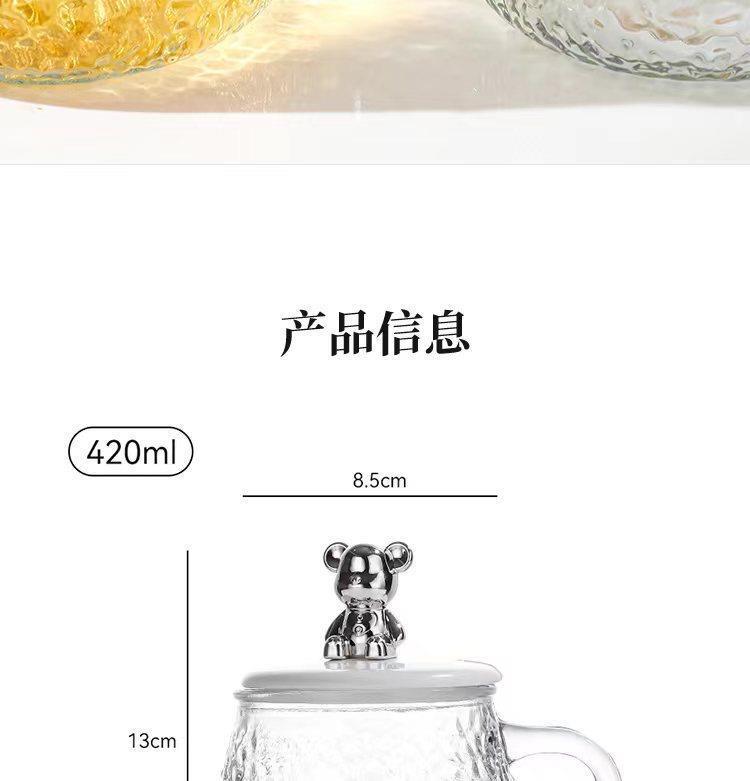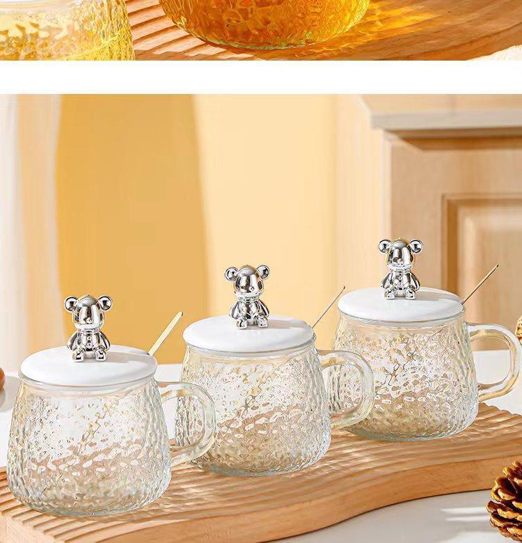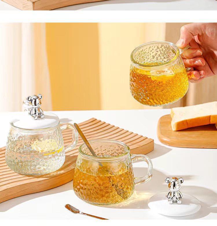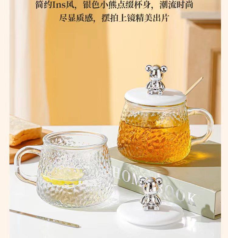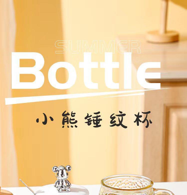 批发锤纹小熊杯ins风耐热玻璃水杯办公室家用咖啡杯伴手礼泡茶杯