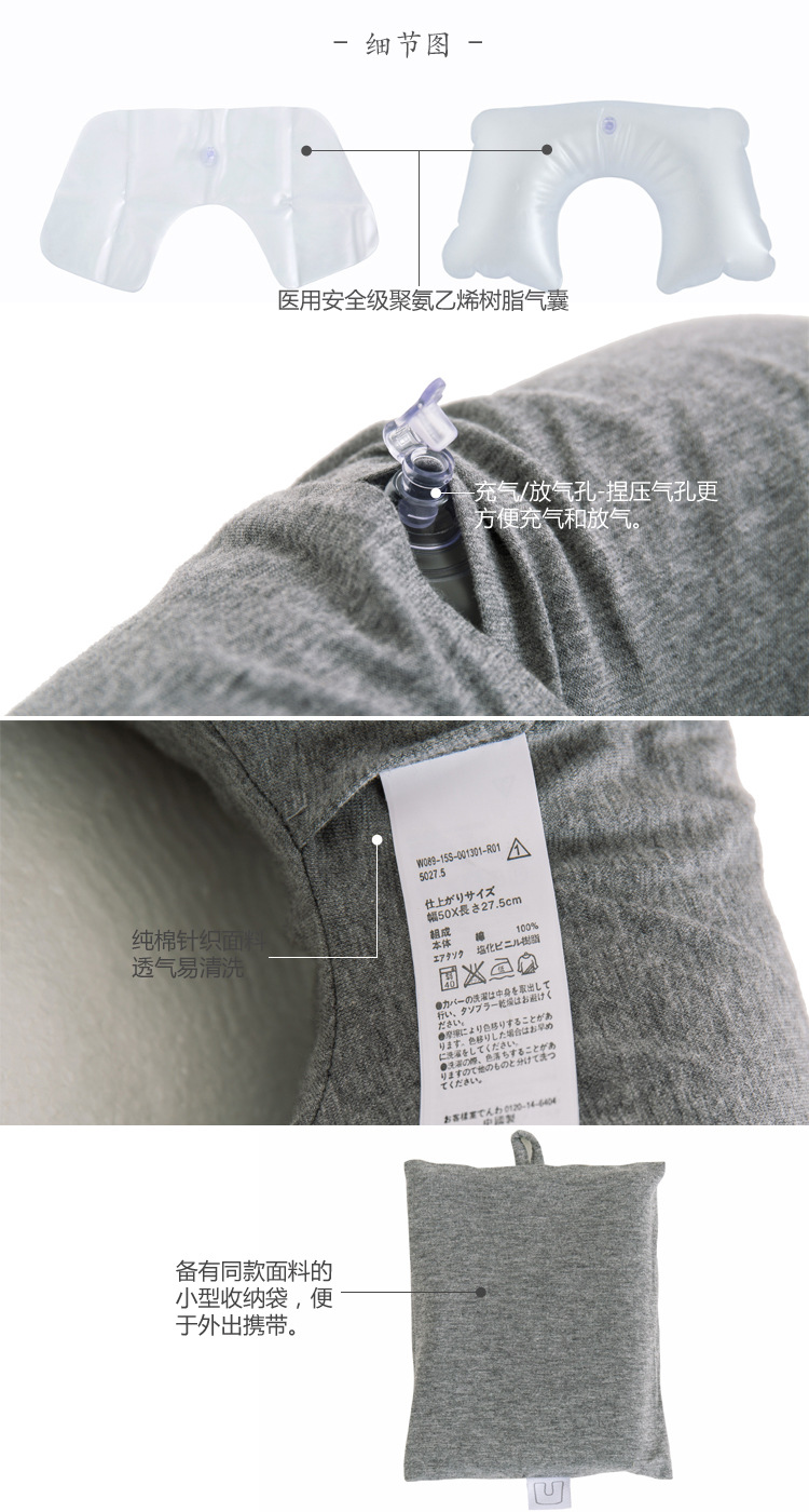 【充气U枕】充气U型枕无印吹气式护颈枕良品旅行枕飞机便携U形颈椎枕脖子靠枕