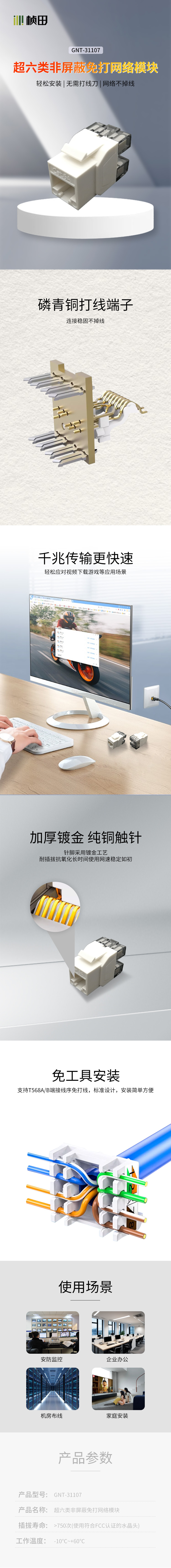 超六类非屏蔽免打网络模块(07)3μ 黑色 GNT-31107